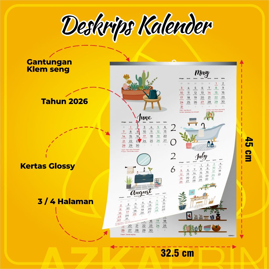 Kalender gantung 2026 aesthetic - kalender dinding