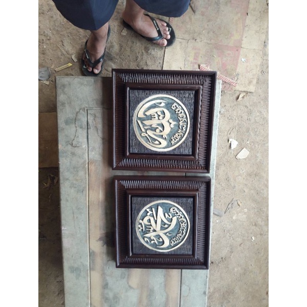 Kaligrafi Allah Muhammad Uk. 60cm x 60cm - Kaligrafi Ukir Jepara - Kaligrafi Ukiran Kayu Jati - Hiasan Dinding Islami