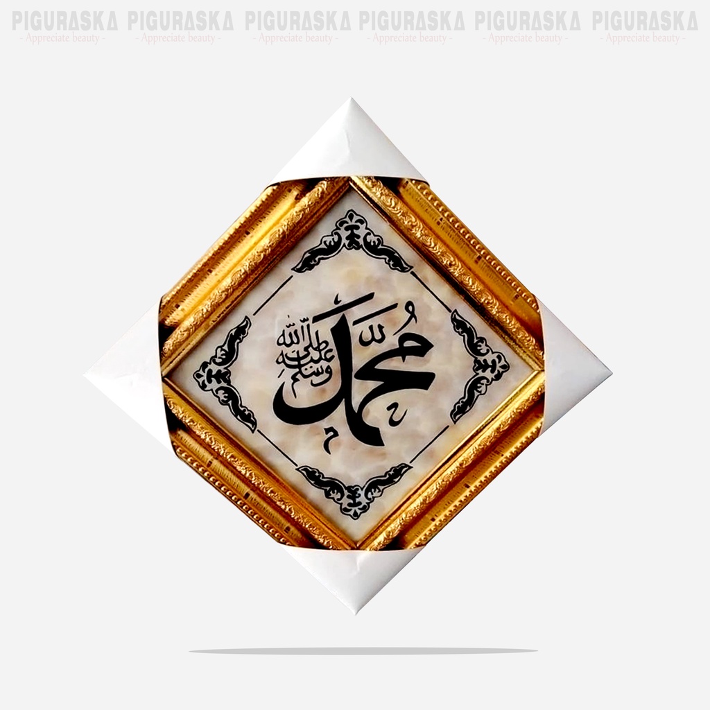 Kaligrafi Lafal Allah Dan Muhammad 1 [Paket Free Kayu] / Kaligrafi Islami Pajangan Sepasang Size 27Cm Persegi ~ Lis 4Cm