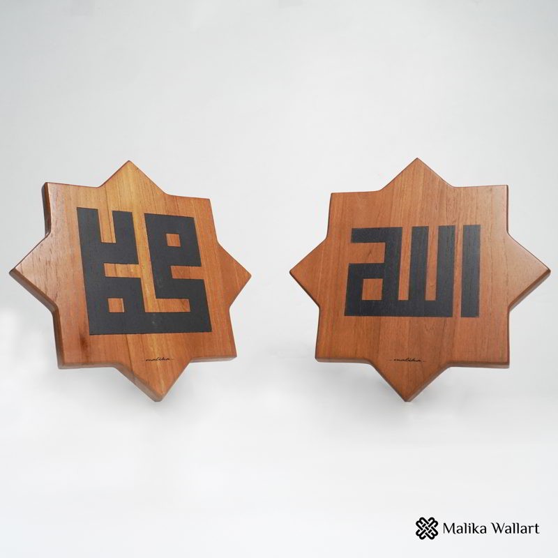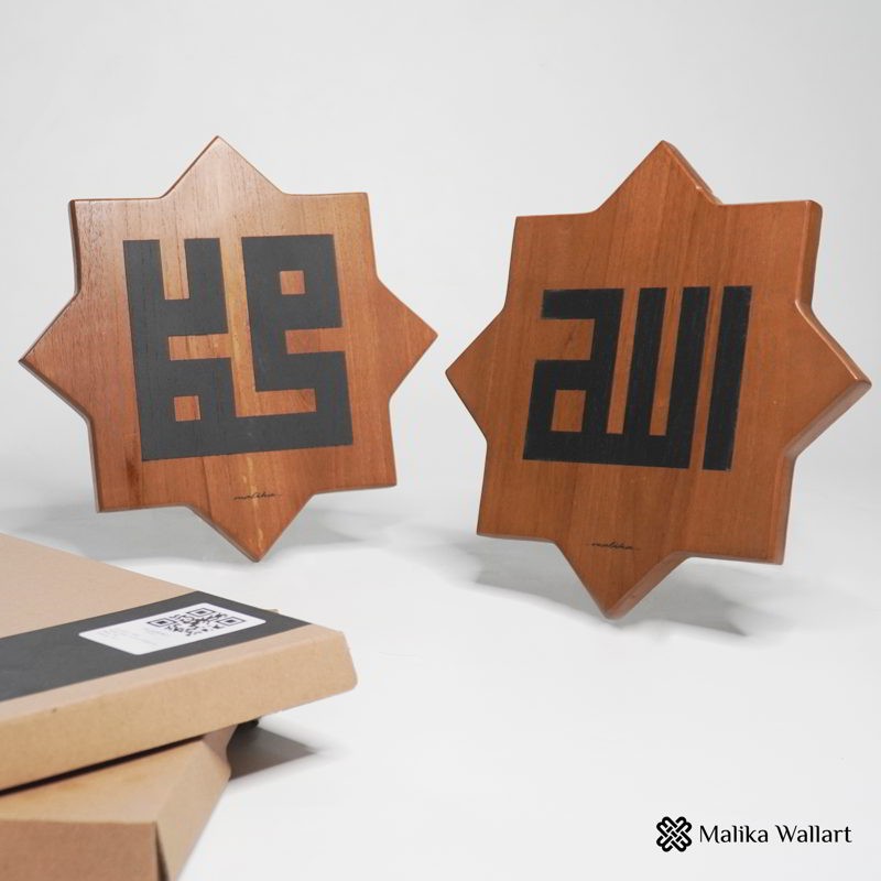 Kaligrafi Solid Wood Laser Allah Muhammad