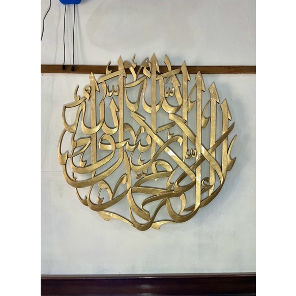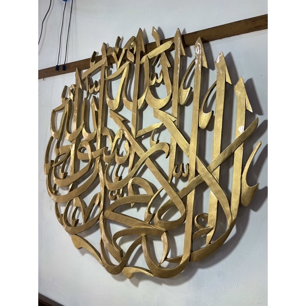 Kaligrafi Syahadat ukir jati 80cm emas READY STOCK