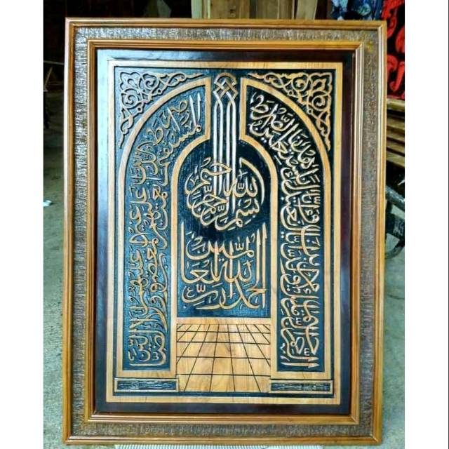 Kaligrafi surat al fatihah/kayu jati/hiasan ruangan/hiasan dinding