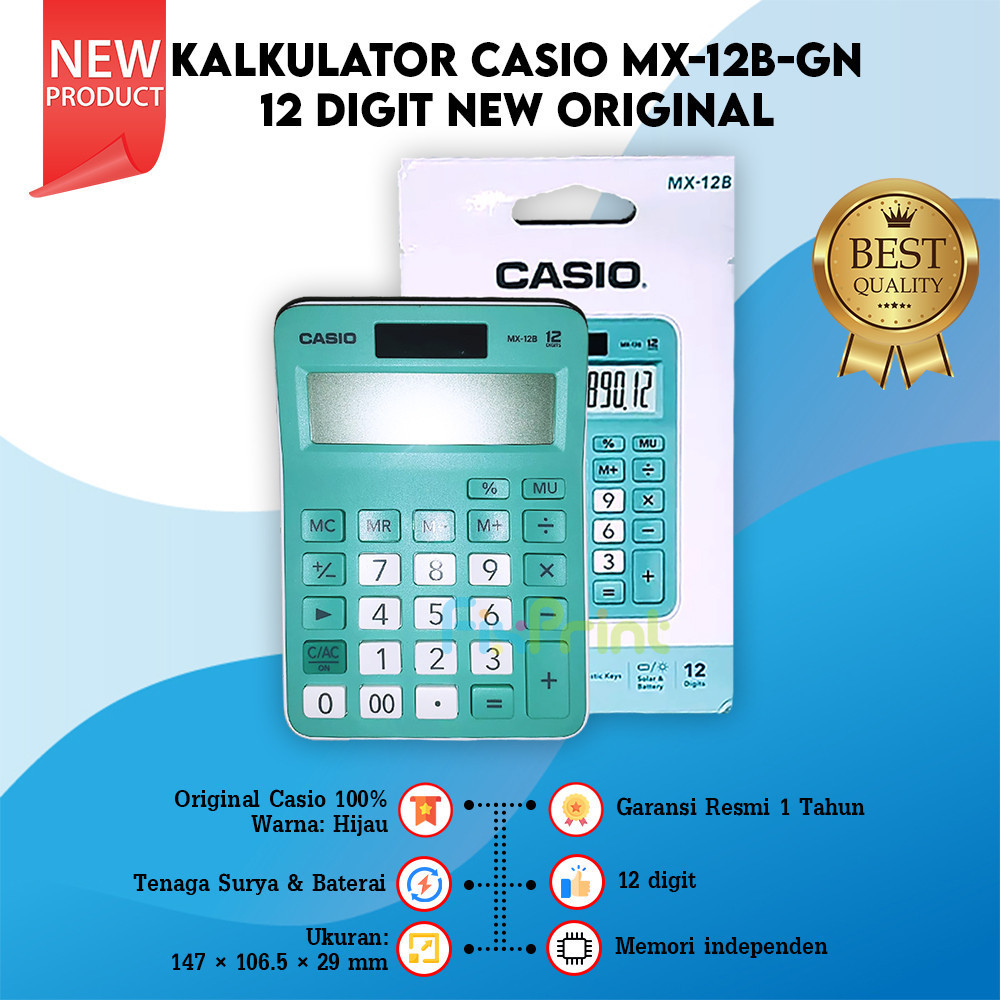 Kalkulator Casio MX-12B Calculator Desktop MX 12B 12 Digits Warna Lucu Pink Putih Biru Muda Hijau Hitam Office New Original