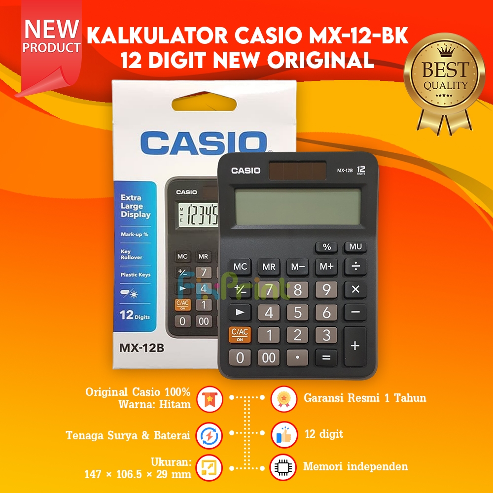 Kalkulator Casio MX 12B Calculator MX-12B Desktop 12 Digit Kalkulator Lucu Pink Biru Muda Putih Hitam