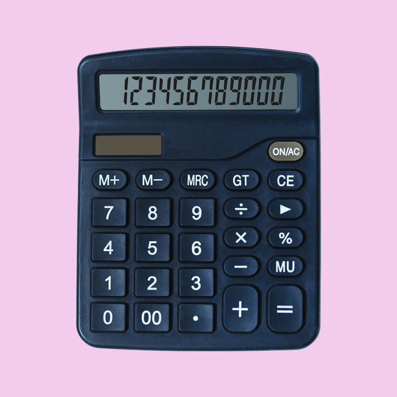 Kalkulator Elektronik Digital 12 Digit - Black, Kalkulator toko baterai AA / Batrai Kancing Tenaga Surya Cahaya pink blue orange green kalkulator kecil besar kantong lucu cute color