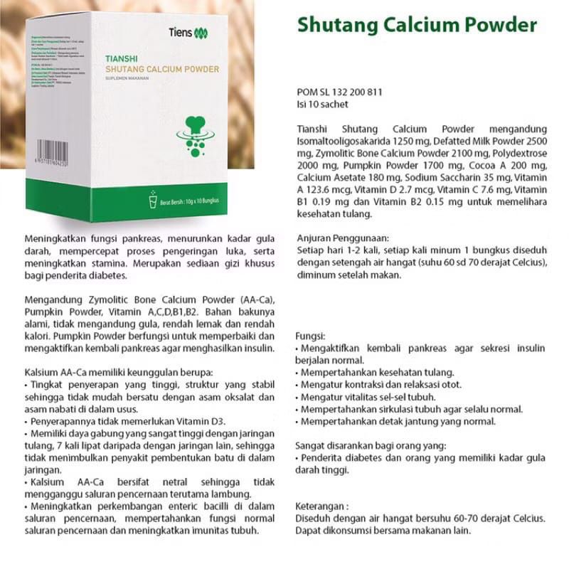 Shutang Calcium Labu China Tiens TCM Herbal Cina Tiongkok | Kalsium Diabetes Tianshi | Tianshi Shutang Calcium Powder | Susu Kalsium Diabetes Tianshi | isi 10 Sachet | Dikirim dari Tiens Jakarta