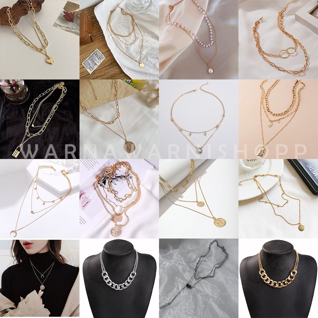 Kalung Rantai Multilayer Liontin Gembok Aksesoris Hijab Fashion Wanita Korean Style Layered Necklace Part 1