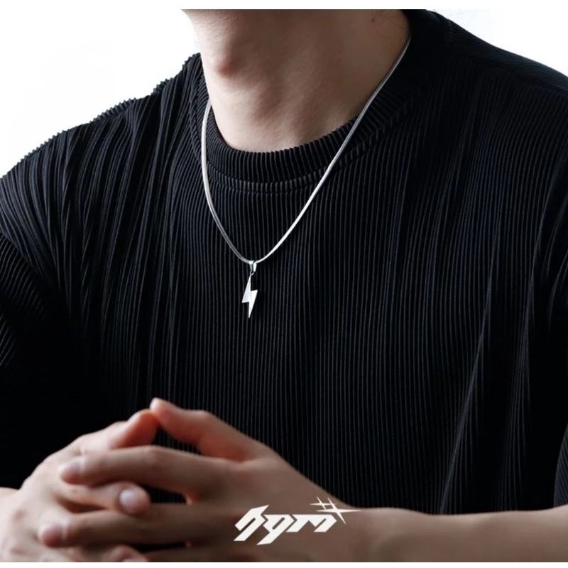 Kalung Rantai Titanium Stainlees Stell Pria Liontin Petir Terbaru Silver Anti Karat Dan Tidak Pudar