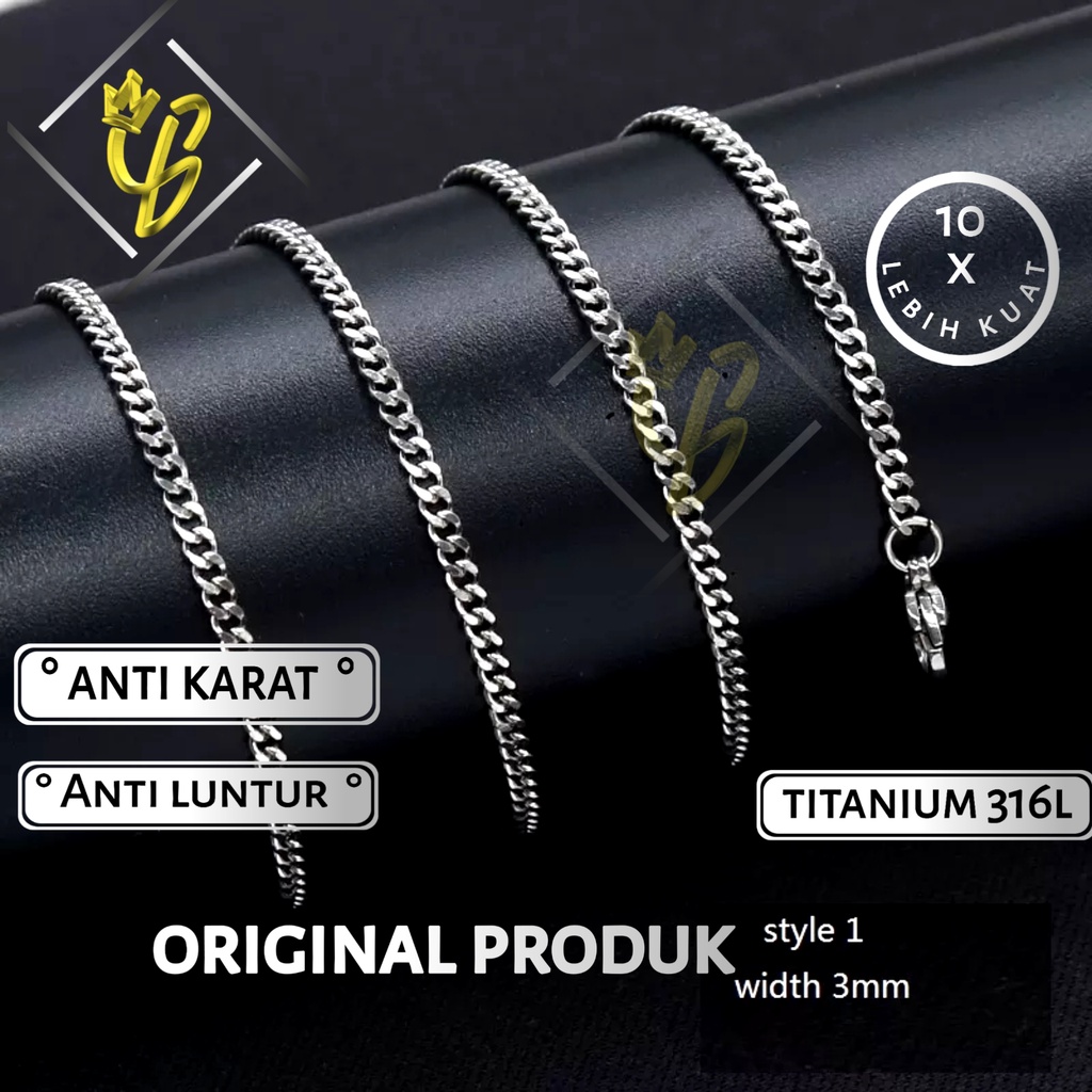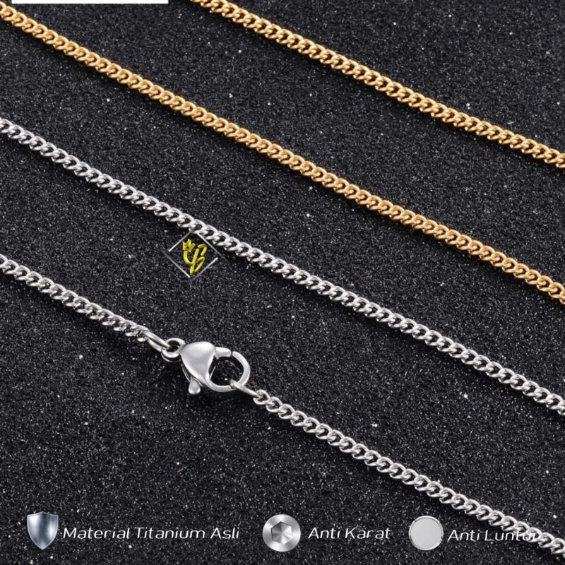 Kalung Titanium Pria Wanita Cowok Cowo Cewek Cewe Choker Coker Asli Keren Emas Gold Anti Karat RSCS