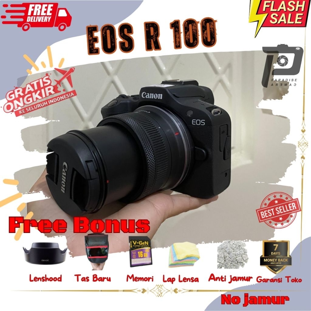 Kamera Canon Eos R100 + Kit Like New Full Bonus Siap pakai