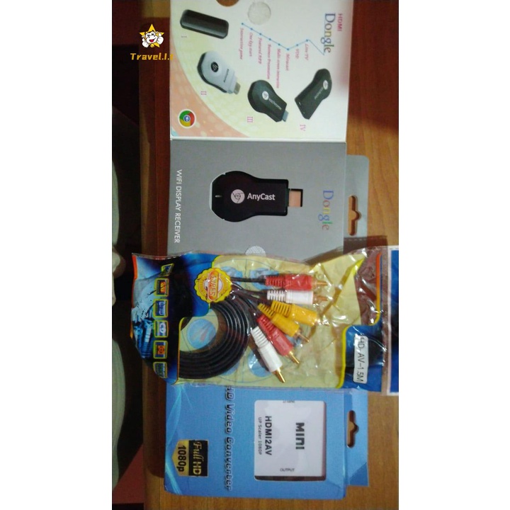 Kamera & DroneMENSTORE - Paket lengkap sambungan HP android ke TV tabung (anycast dongle + hdmi2av )
