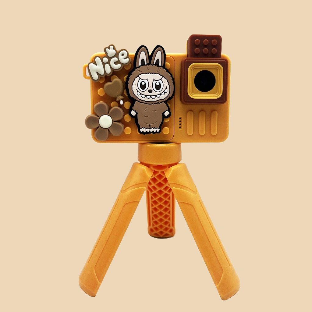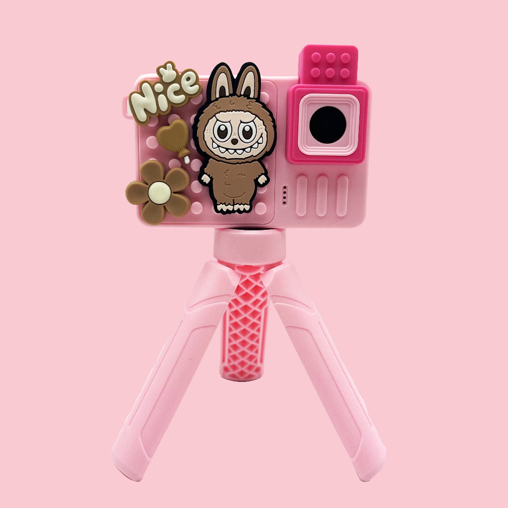 Kamera Mainan Elektronik HD 2.4 inci Kartun Mini Kamera Video Rotasi 180 Derajat Mainan Alat Peraga Fotografi Hadiah untuk Anak-anak + 32GB Building Blocks Children's Camera for Kid's Birthday Gift