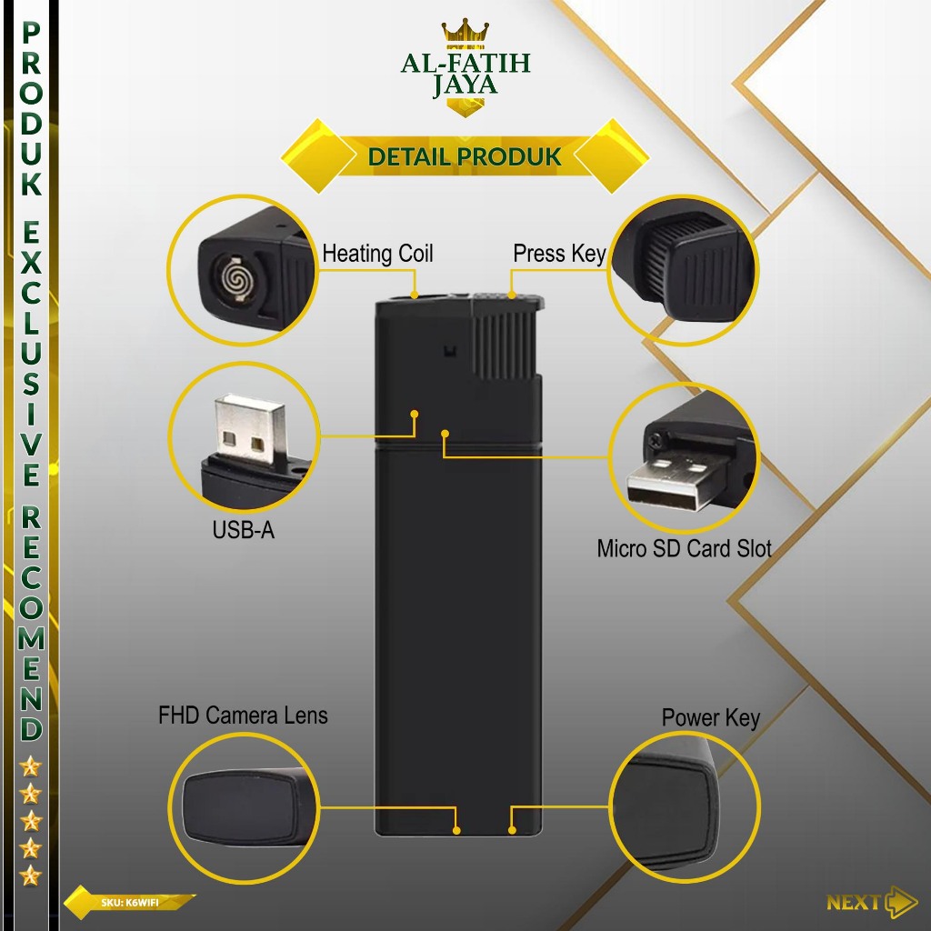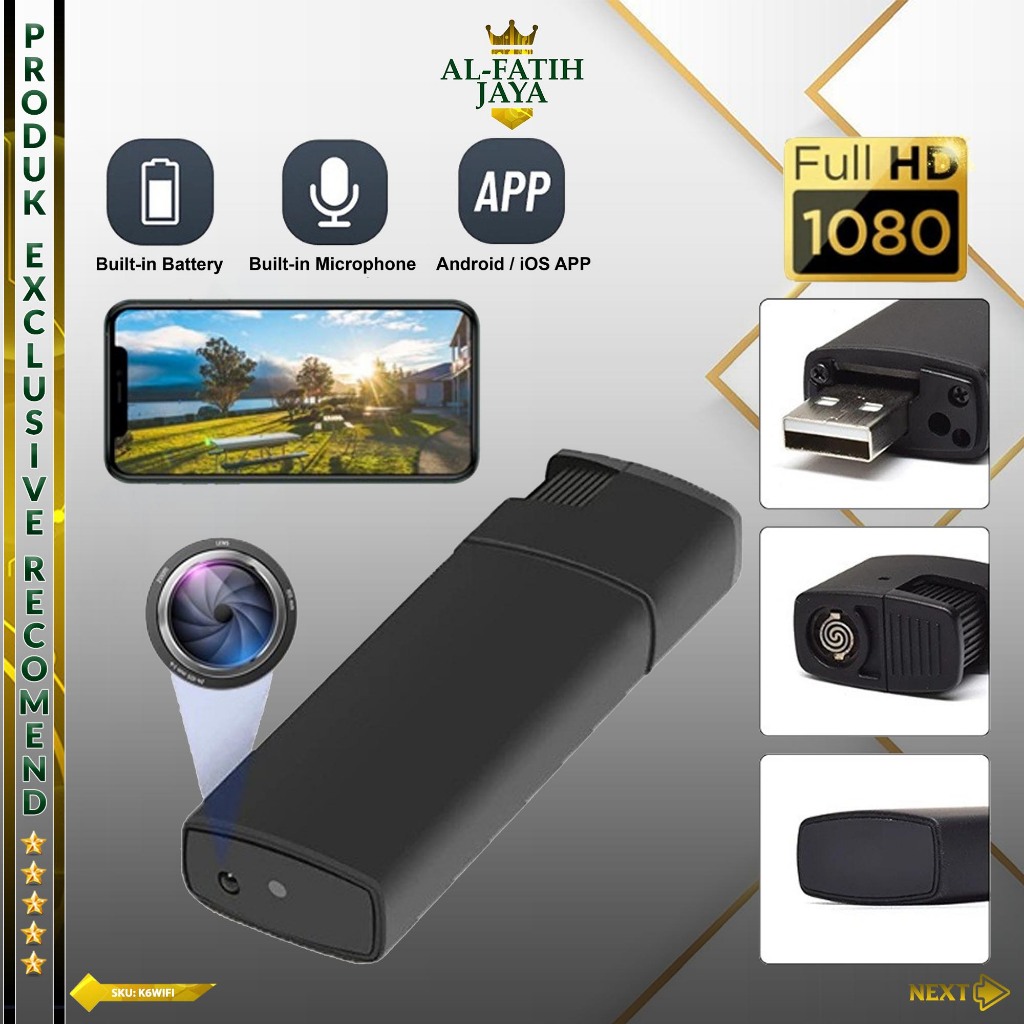 Kamera Mini Korek K6 WiFi Full HD 1080P App Lookcam Spy Cam Camera CCTV Keamanan Rumah Tersembunyi Pengintai Mata Mata Model Korek Api Elektrik Mancis Spycam Kamera CCTV Pengawasan Korek K6 Wireless Camera Pengawasan Perekam Video Foto Jarak Jauh Unik