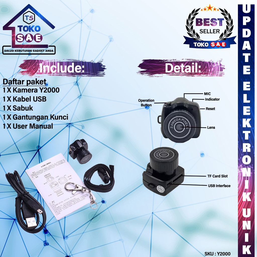 Kamera Mini Y2000 Spy Cam Gantungan Kunci Model Kamera DSLR Mini Gantungan Kunci Motor Rumah Y2000 Camera Mini Webcam Record Audio Video Foto Recorder Micro Cam Camcorder Kamera Pengintai Kecil Dengan Mikrofon Resolusi HD