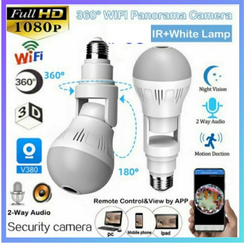 Kamera Wifi Lampu V380 CCTV Bulb Panoramic IP Camera Spy Hidden Camera Pengintai