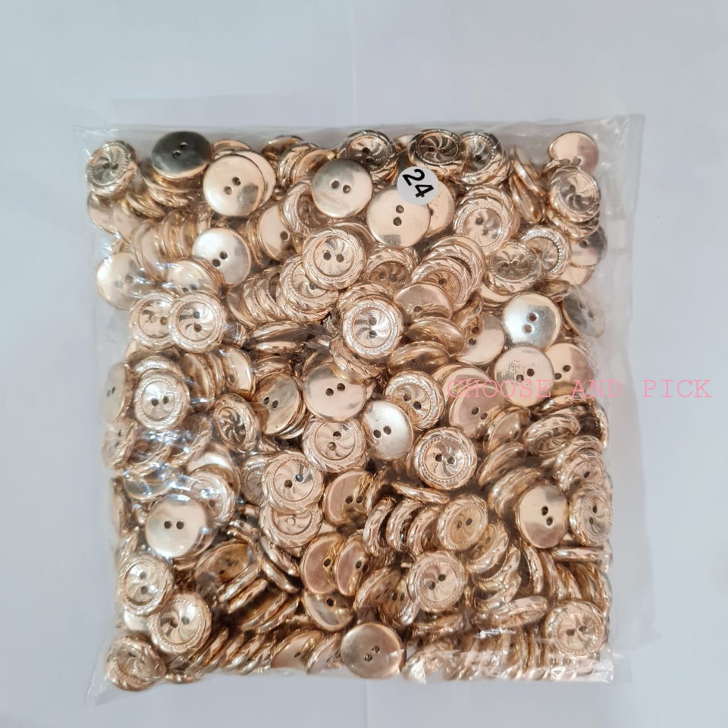 Kancing Baju Lobang 2 Emas / kancing emas motif / Kancing Lubang 2 Emas Rosegold / Kancing Gold 18L 20L 24L 28L Prakarya isi 400pcs MURAH