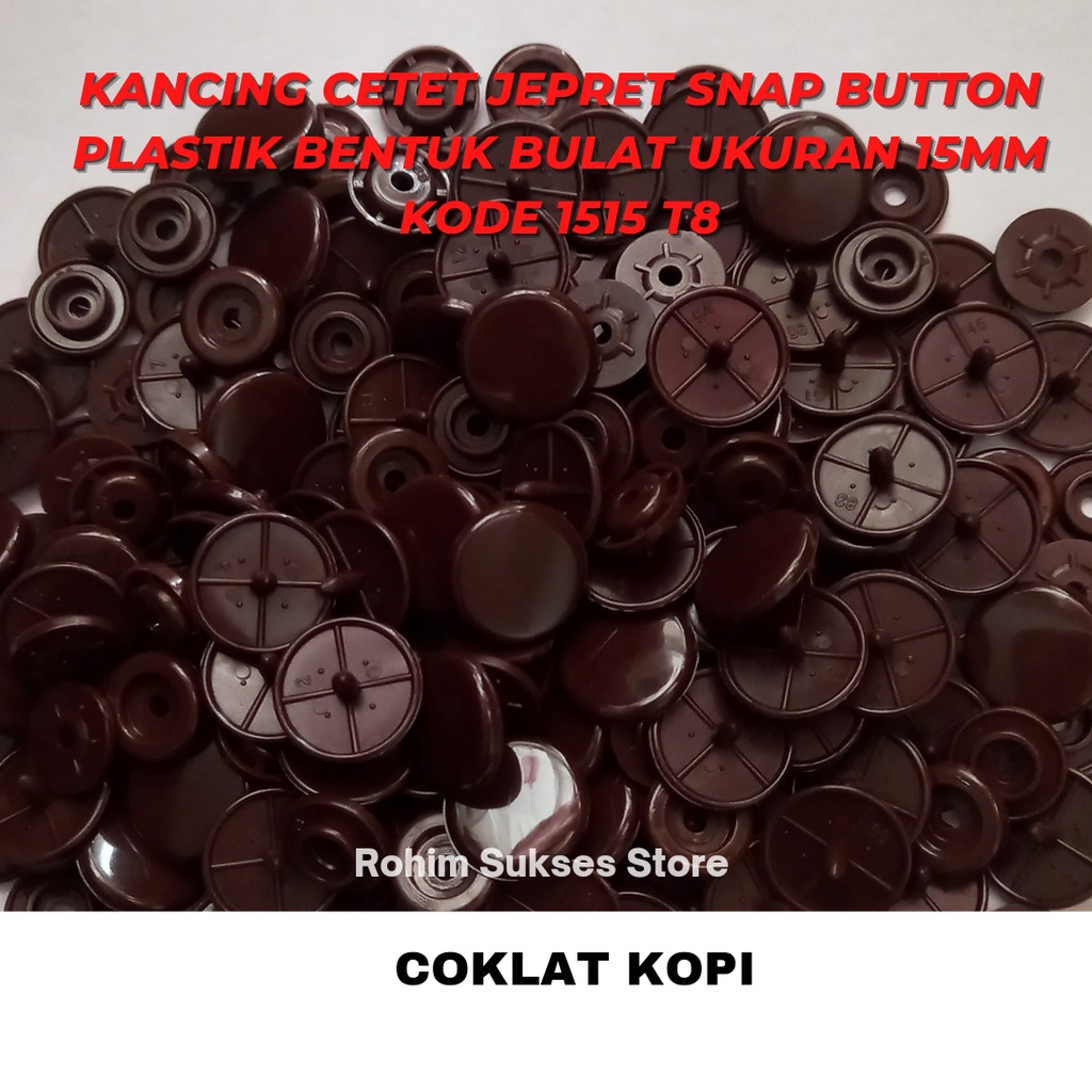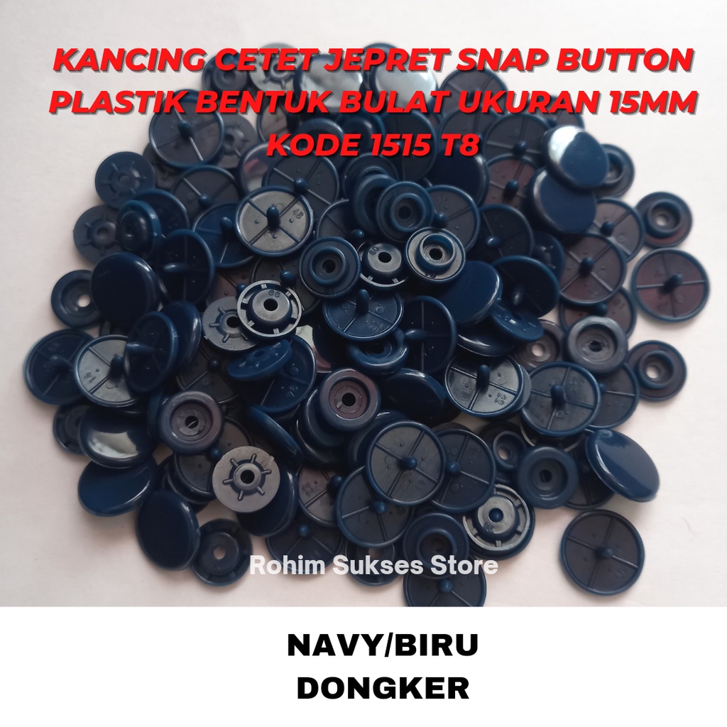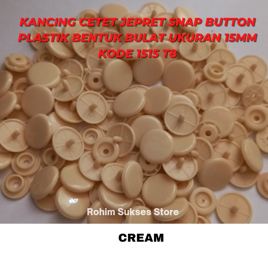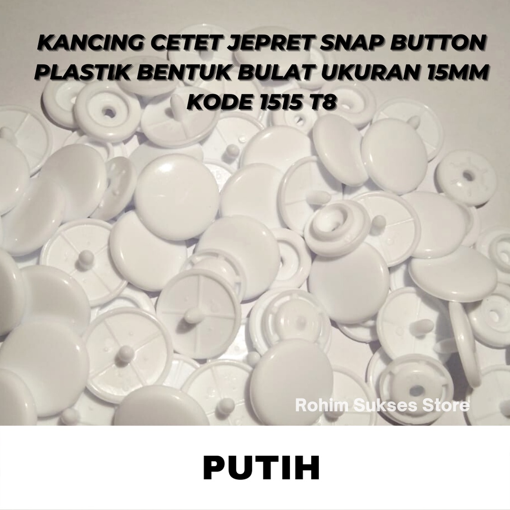 Kancing Cetet Jepret Snap Button Plastik Bentuk Bulat Ukuran 15mm KODE 1515 T8 ISI 1 Gross