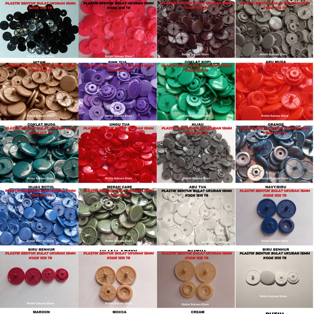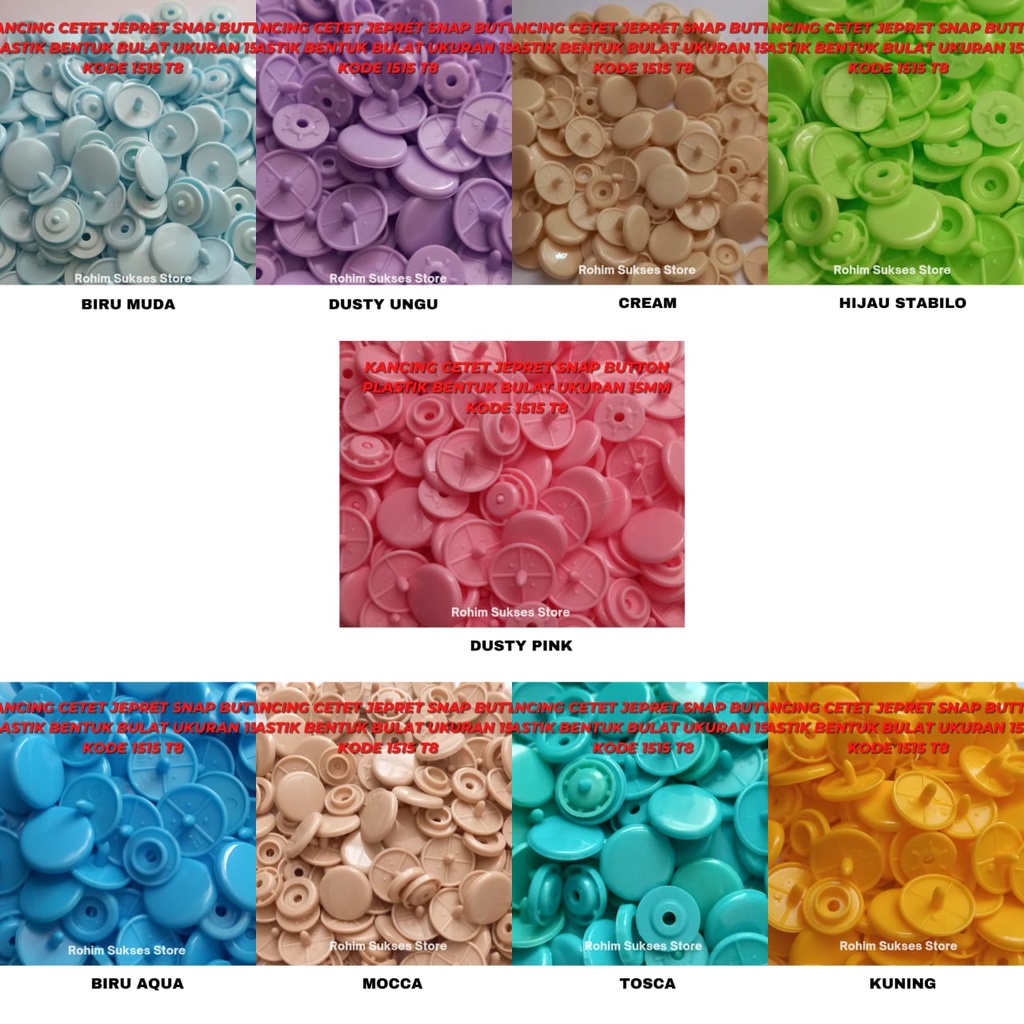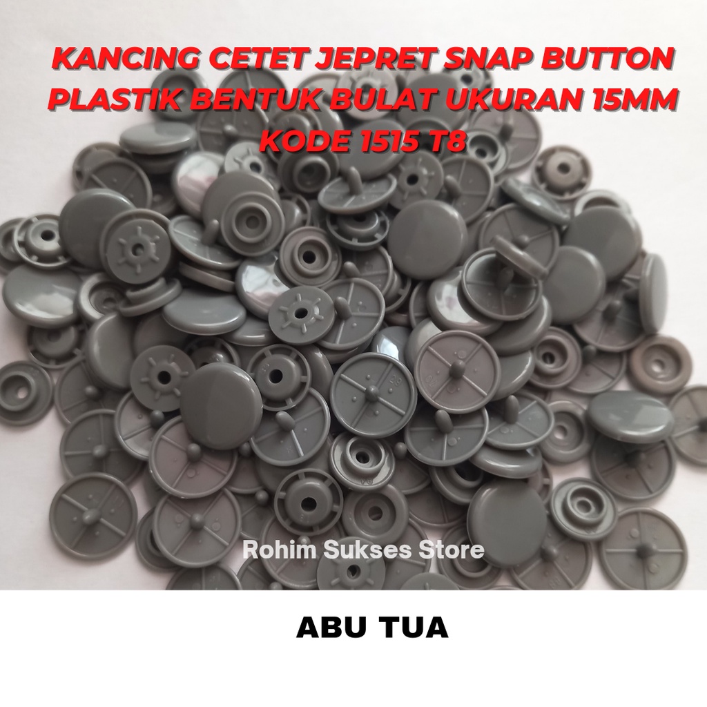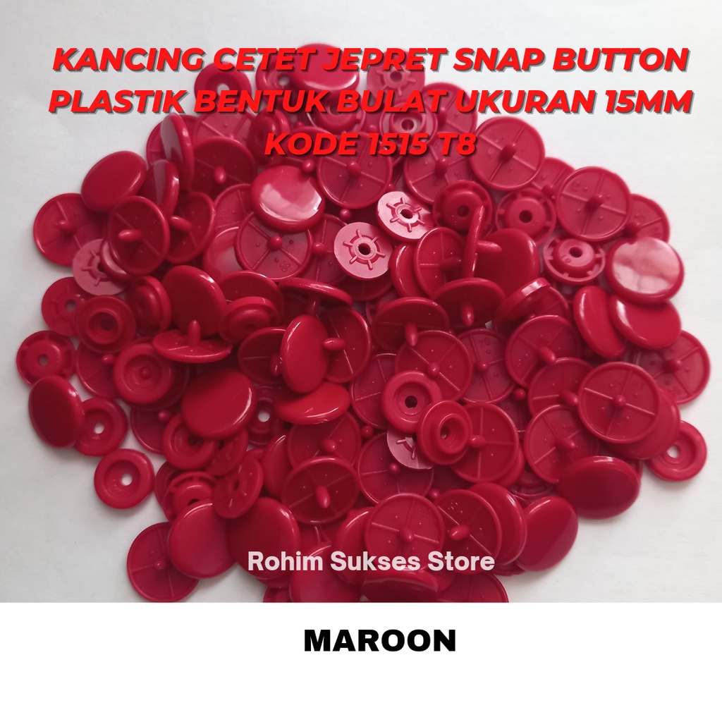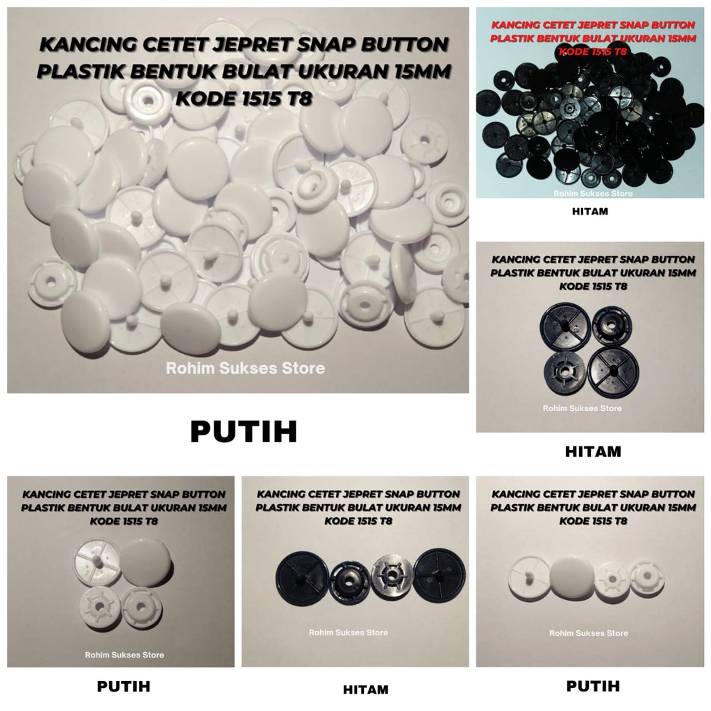 Kancing Cetet Jepret Snap Button Plastik Bentuk Bulat Ukuran 15mm KODE 1515 T8 ISI 1 Gross