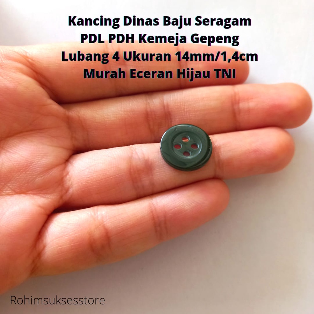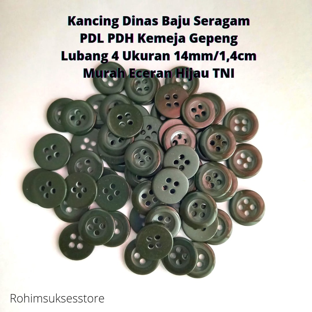 Kancing Dinas Baju Seragam PDL PDH Kemeja Gepeng Lubang 4 Ukuran 14mm/1,4cm Murah Eceran Hijau TNI