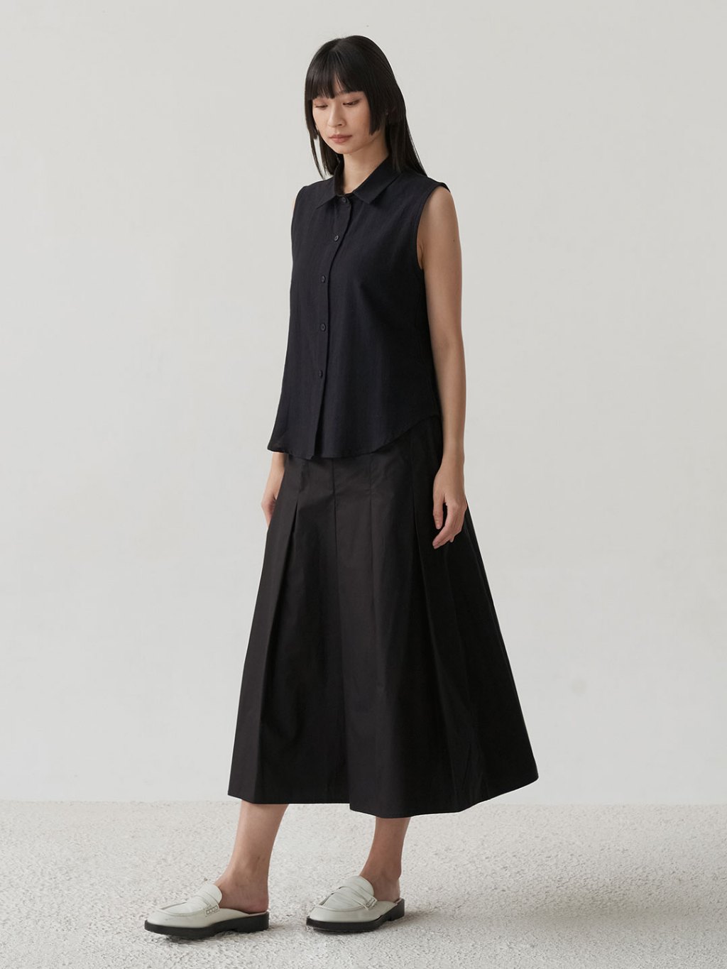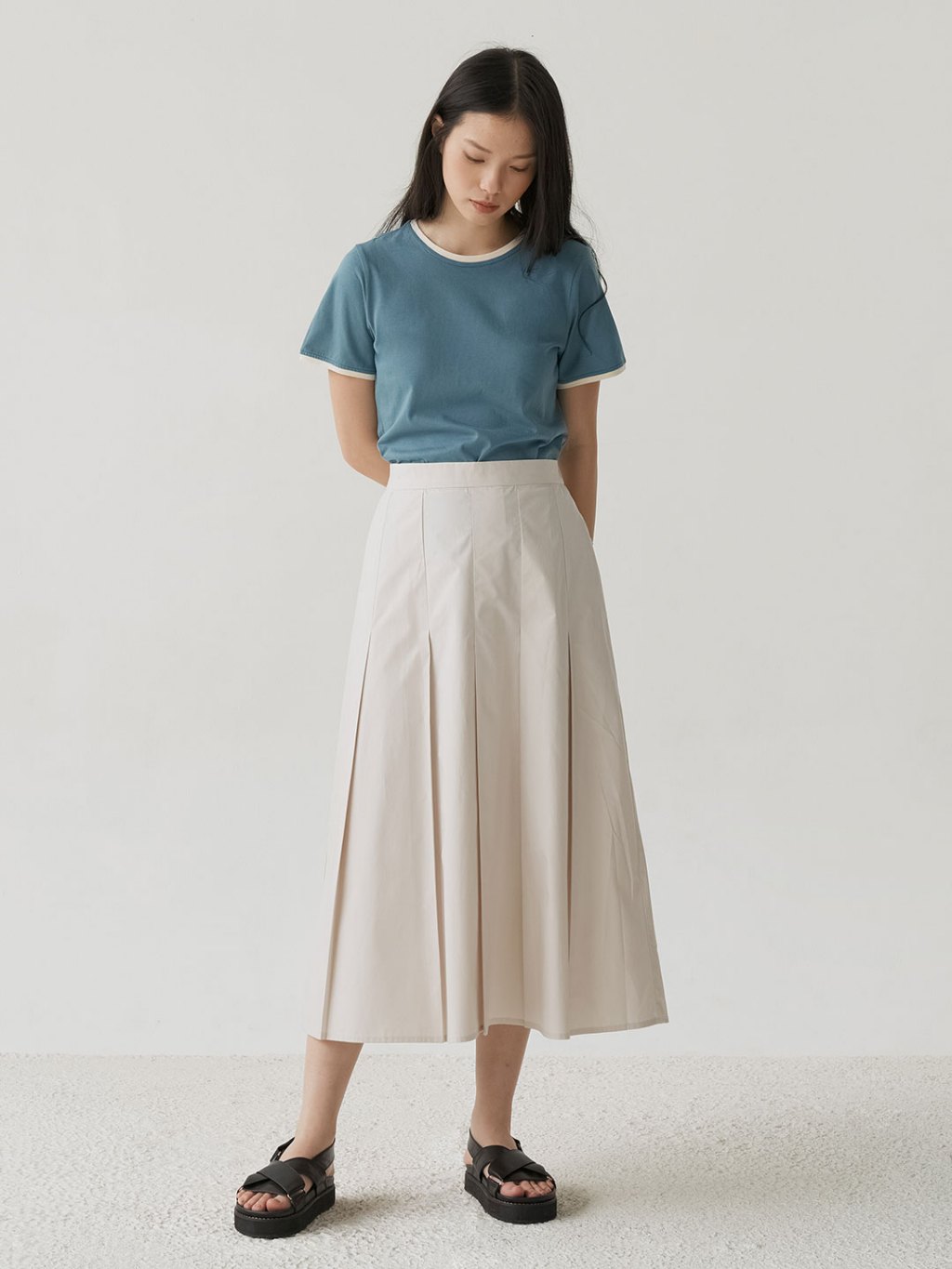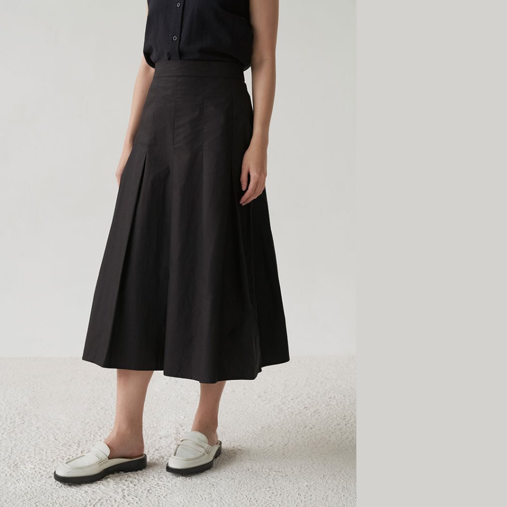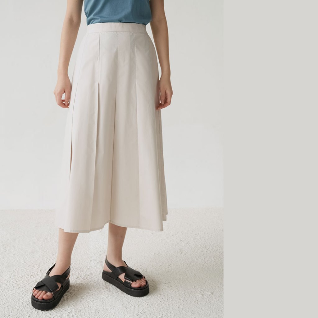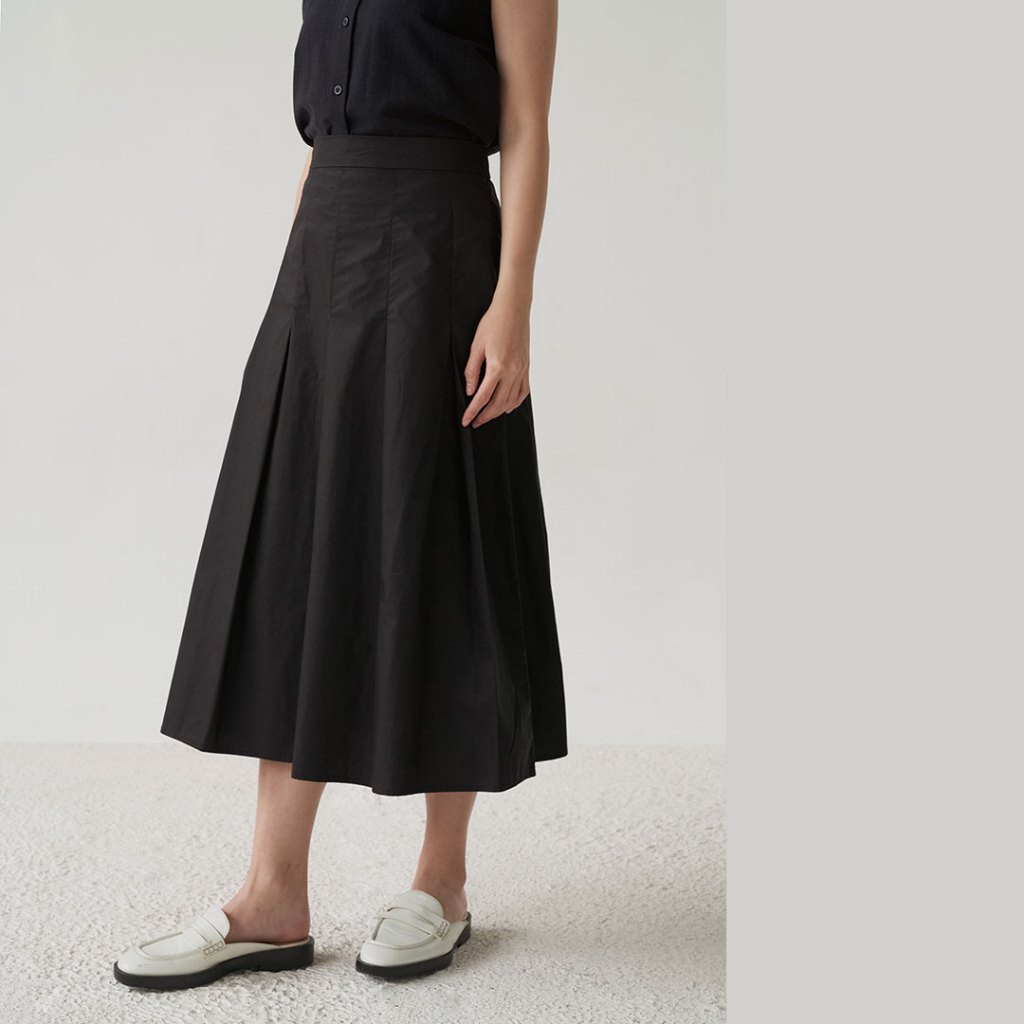 InKano Surrey - Rok midi wanita pleated bahan katun