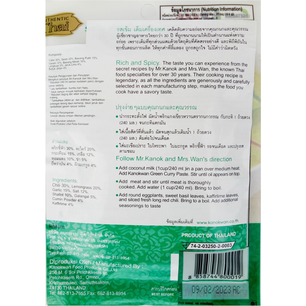 Kanokwan Bumbu Pasta Kari Hijau (Green Curry Paste) 50 gr