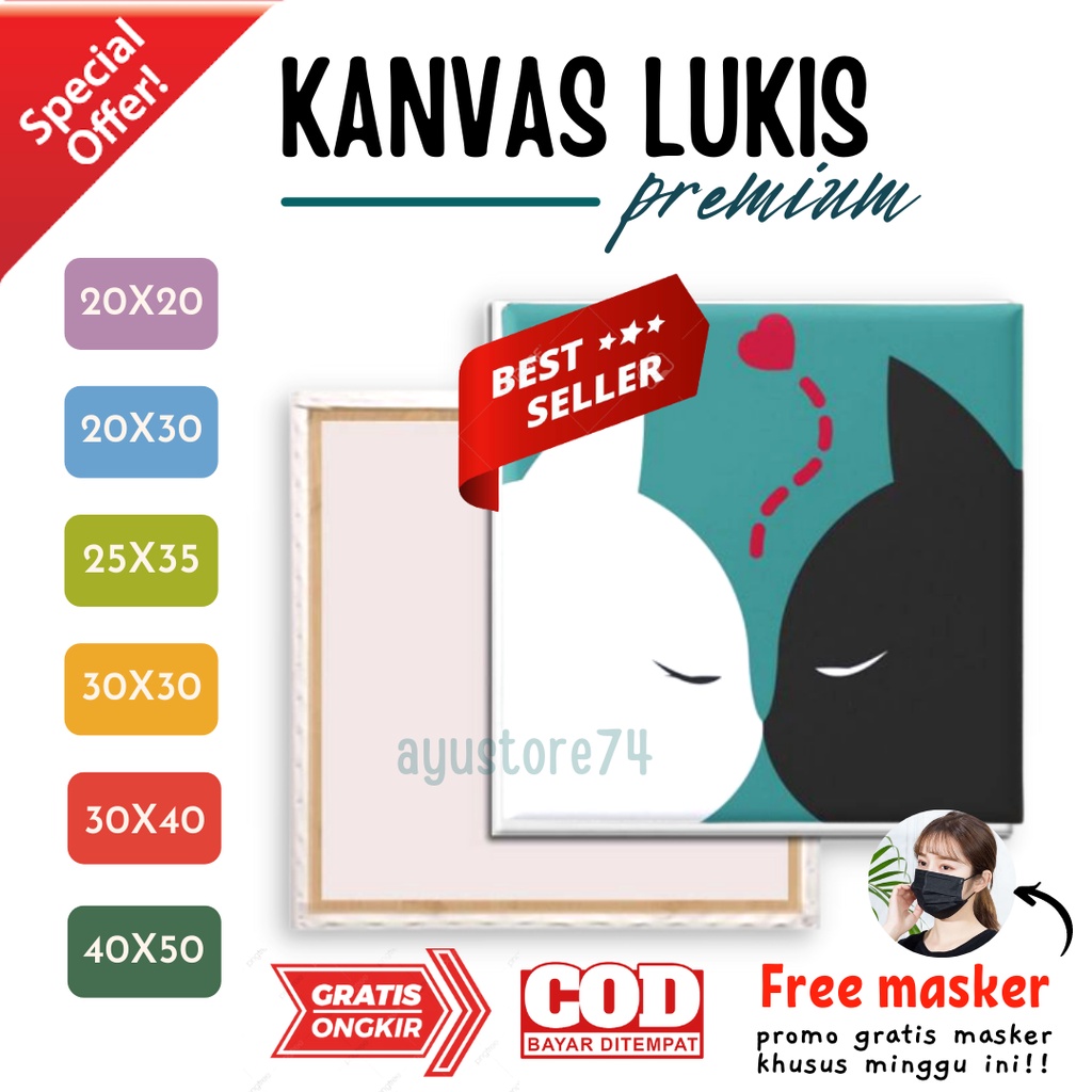 Kanvas Lukis Putih siap pakai - kanvas Cat Akrilik bonus masker - kanvas lukis 20x20 / 20x30 / kanvas lukis A3