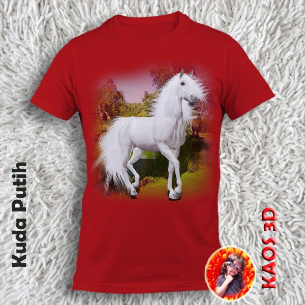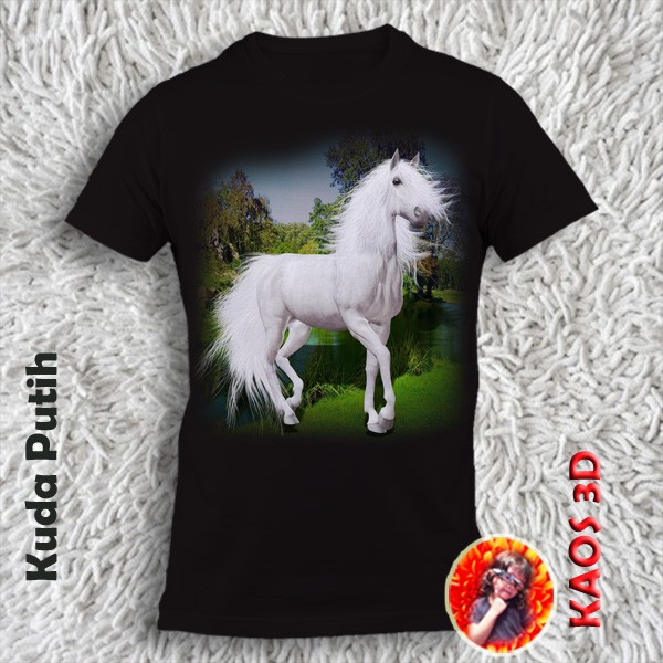 Kaos 3D Gamar Kuda Poni Putih ukuran anak sampai dewasa kualitas cetak gambar 3 dimensi