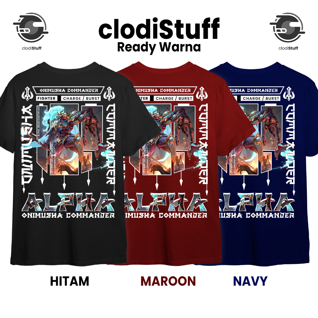 Kaos MLBB ALPHA EPIC Skin ONIMUSHA COMMANDER Mobile Legends Lengan Pendek Hitam Combed 24s ML