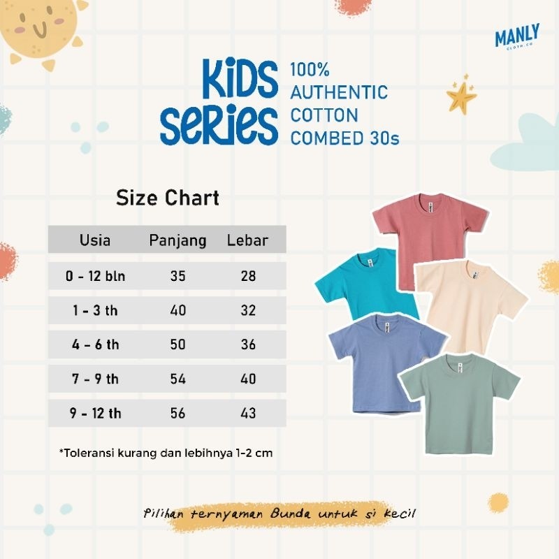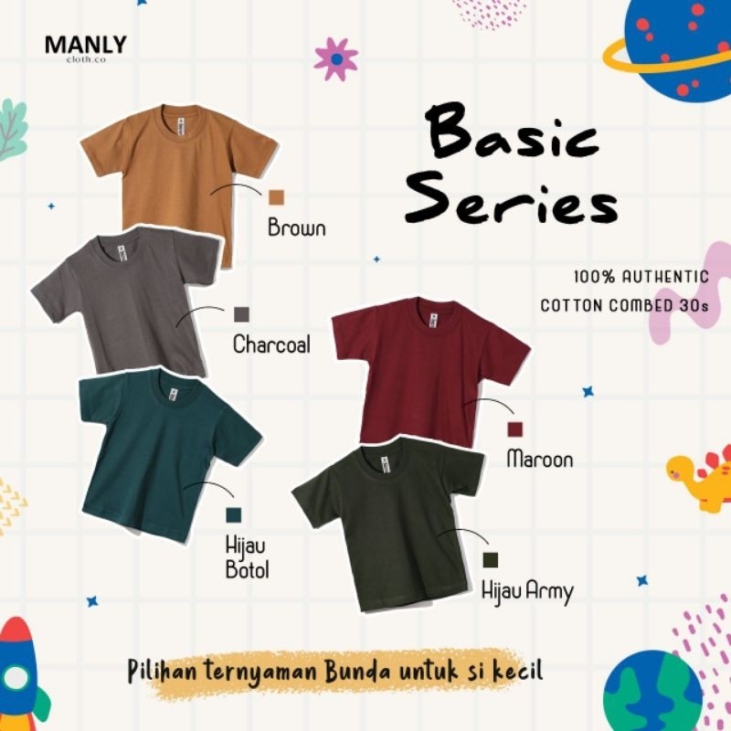 Kaos Anak Polos 100% PREMIUM Cotton Combed 30s Umur 1-12 TAHUN