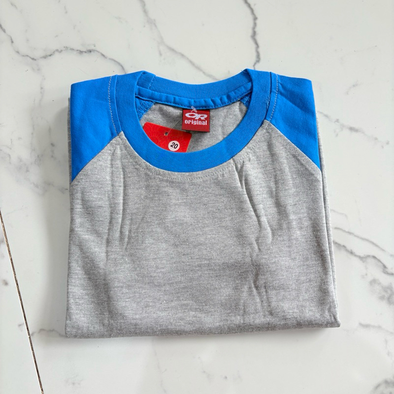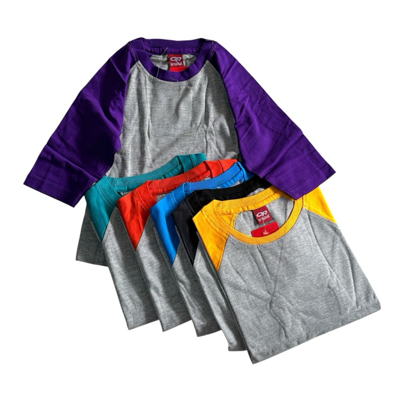Kaos Anak Polos Oblong Reglan Lengan 3/4 Size 20 22 2-5 Tahun Katun