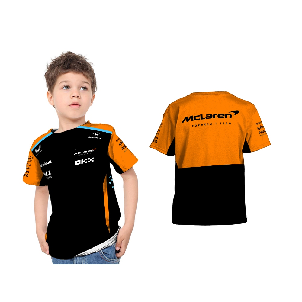 Kaos Anak T-Shirt Baju Jersey F1 MCLAREN Hitam Balap Mobil Formula Satu Custom Full Printing