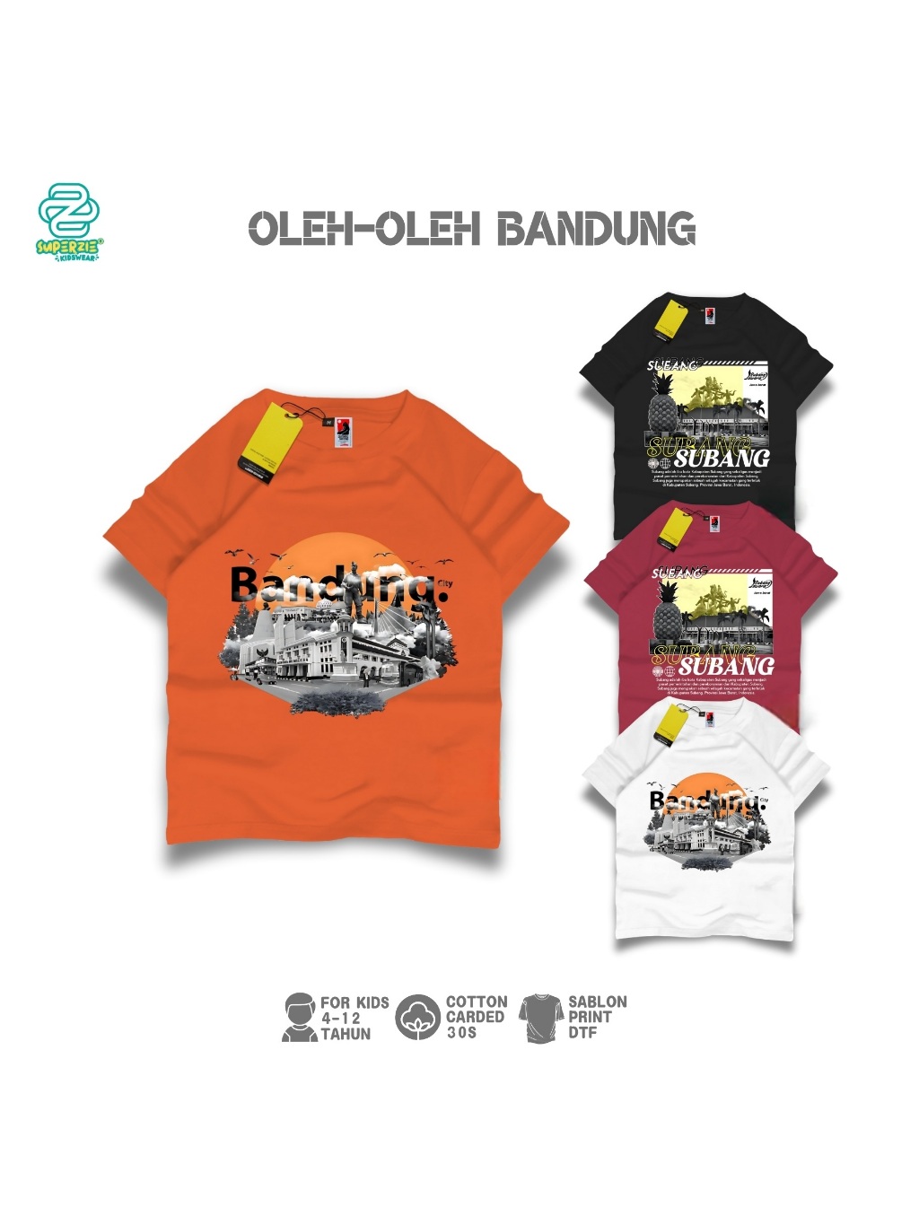 SUPERZIE Kaos Bandung distro Anak Laki laki burgundy hitam putih 4-12 tahun Atasan katun adem sablon