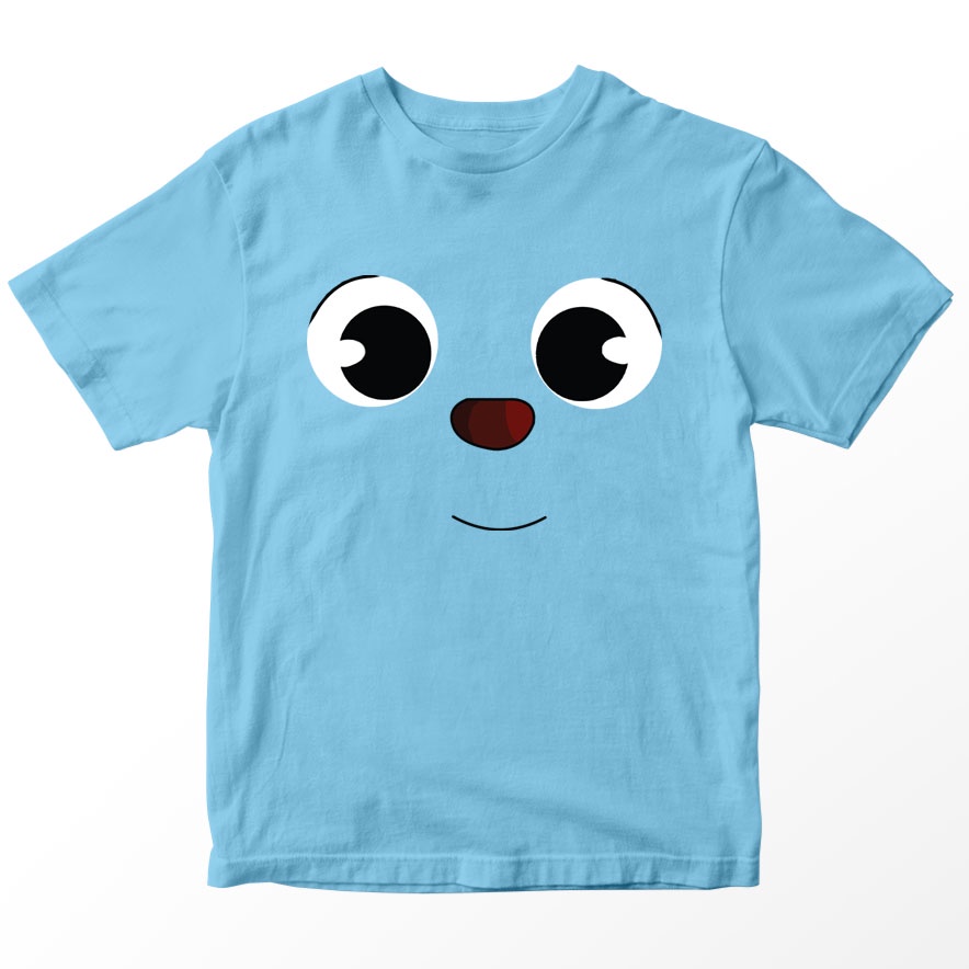 Kaos BabyBus Anak Gambar Blue Cat Face, Warna Biru Muda, Umur 1-5 Tahun