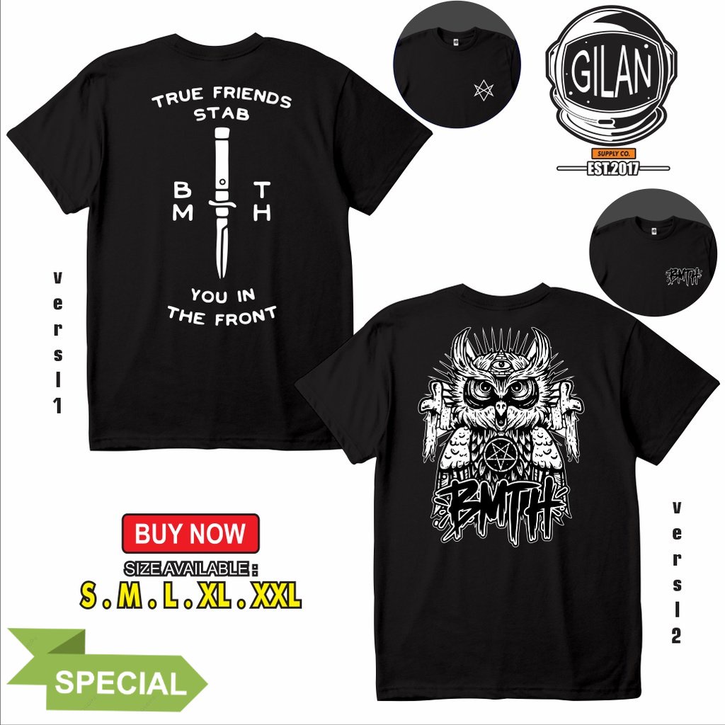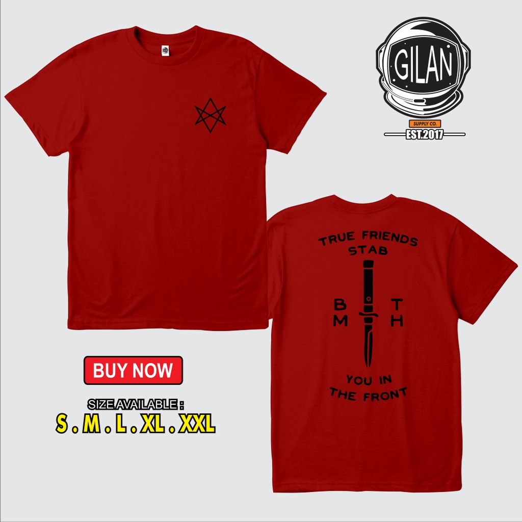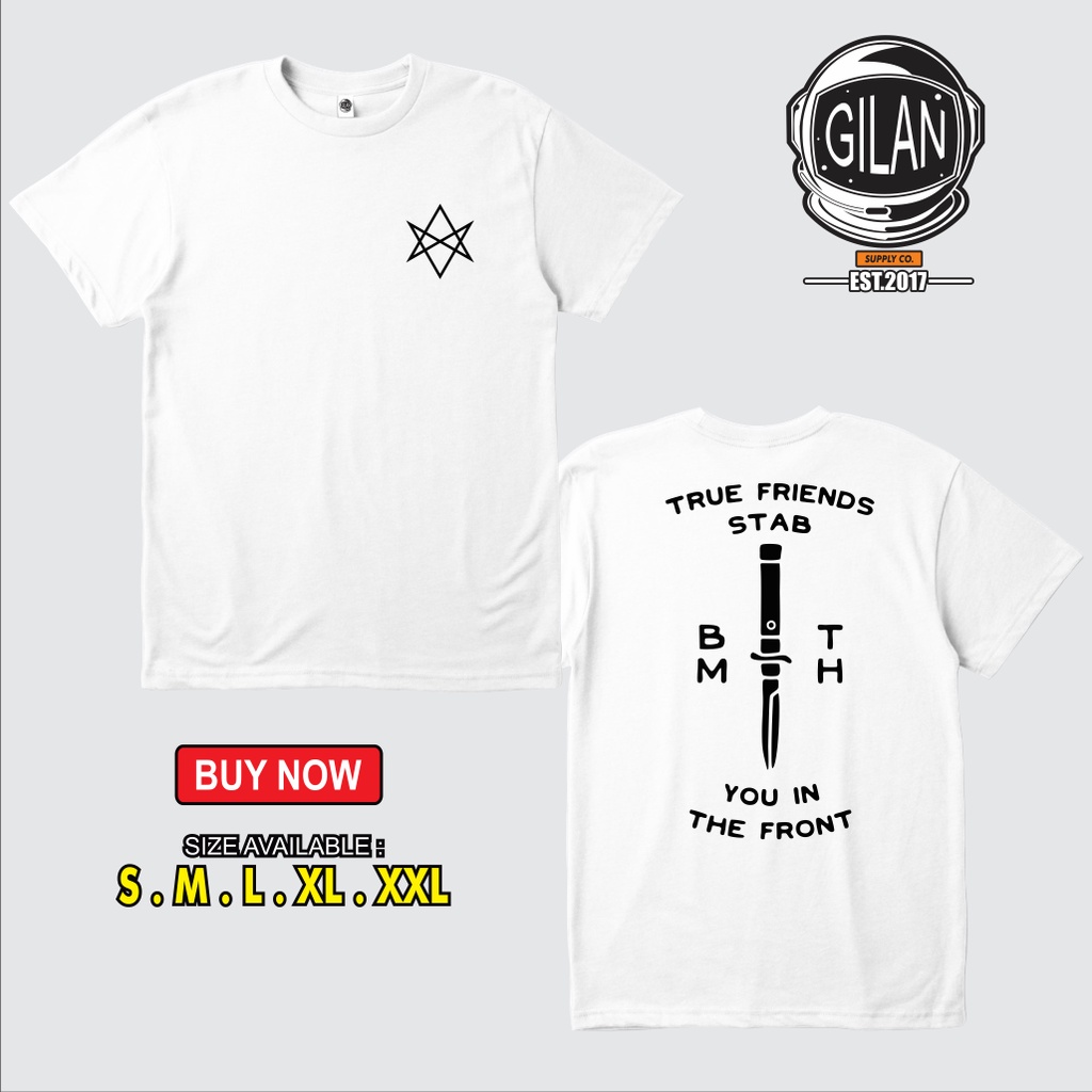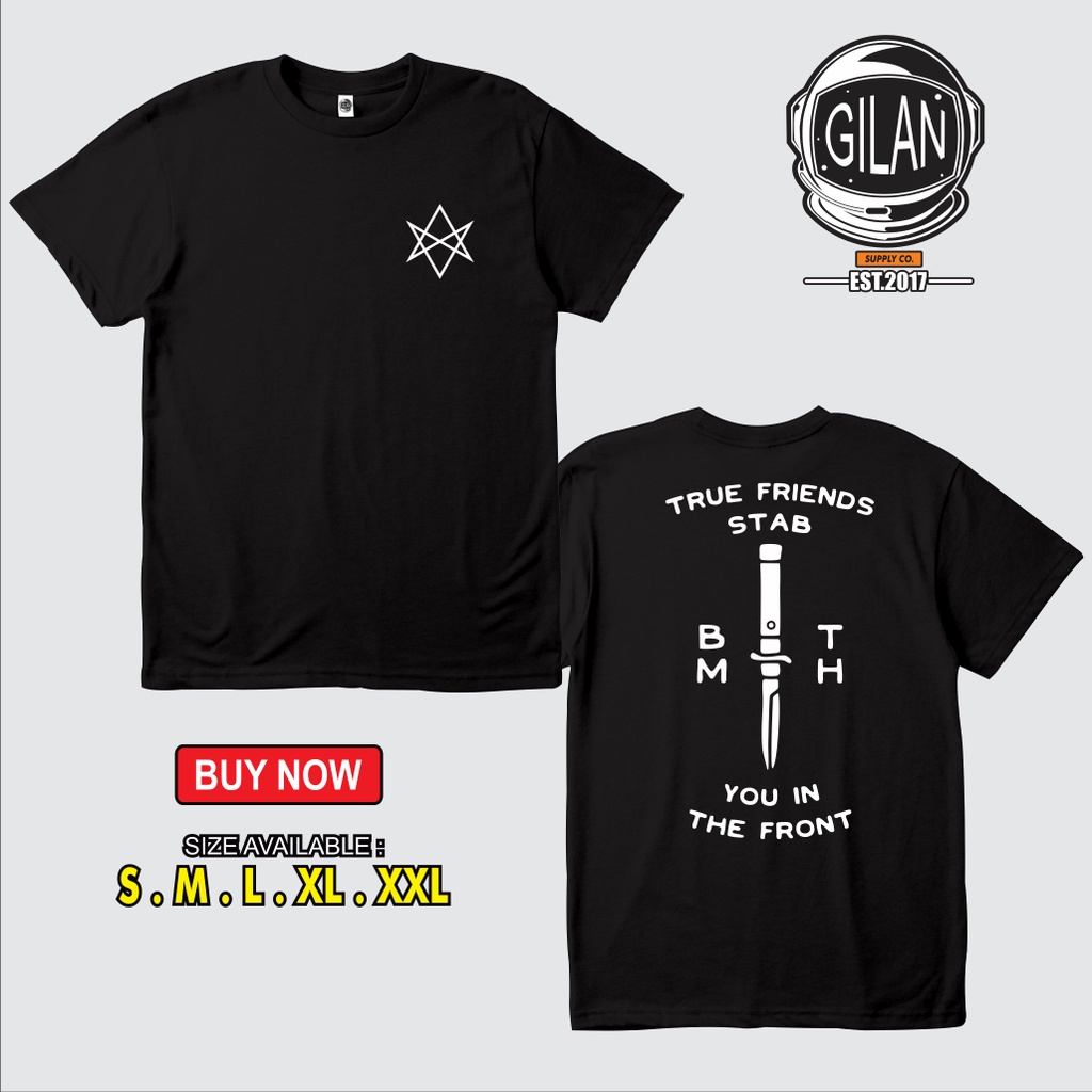 Kaos Baju Band BMTH LOGO BRING ME THE HORIZON TRUE FRIENDS STAB YOU IN THE FRONT MUSIK - Destroku