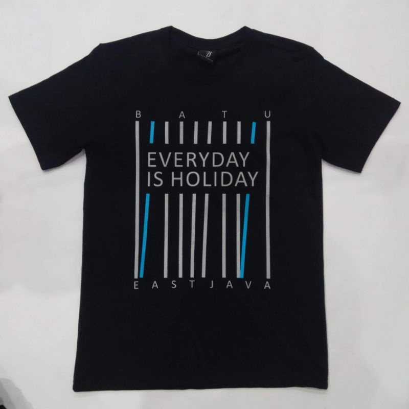Kaos Batu Everyday Holiday barcode garis bahan katun hitam (oleh2 khas wisata kota batu - malang)