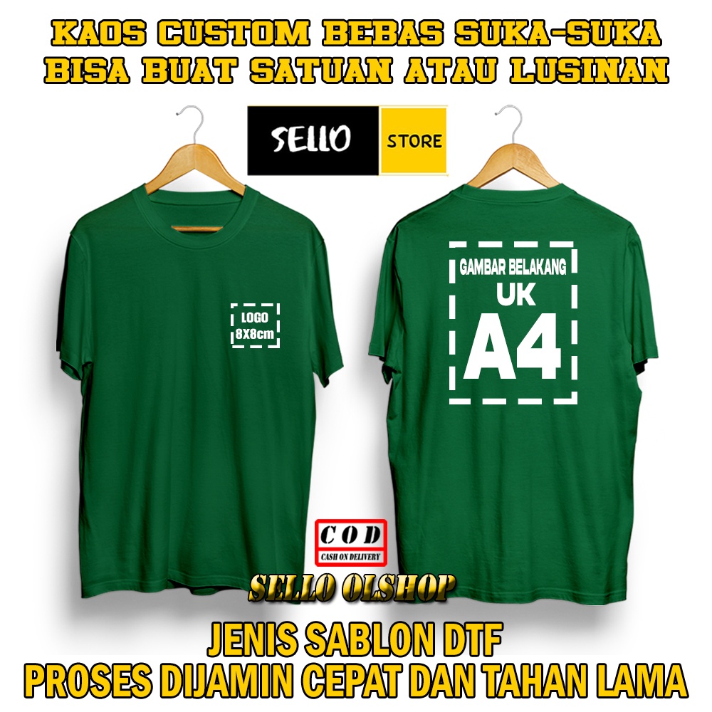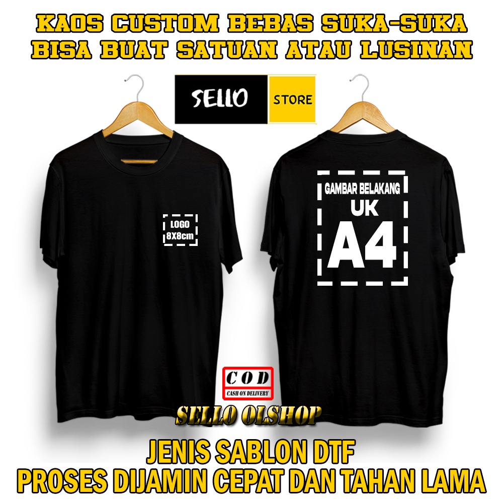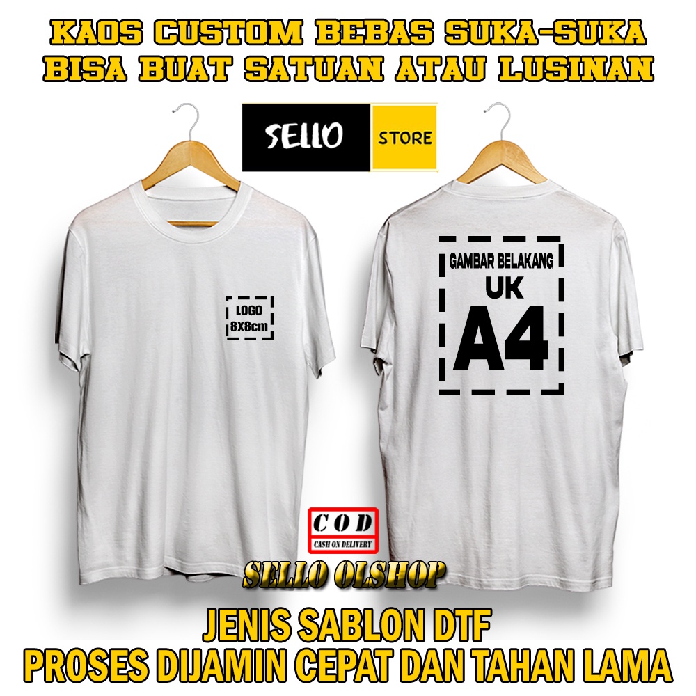 KAOS SABLON CUSTOM SATUAN FOTO GAMBAR NAMA TULISAN KATA KATA DESAIN SENDIRI TEKNIK SABLON DTF