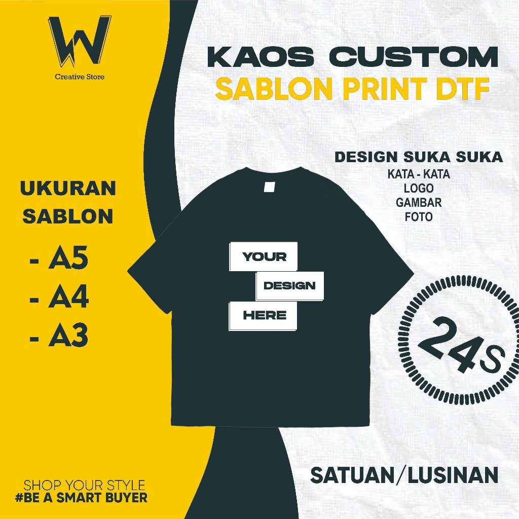 Kaos Custom Satuan / Kaos Custom Sablon Satuan Dewasa / Sablon DTF Baju Design Bebas