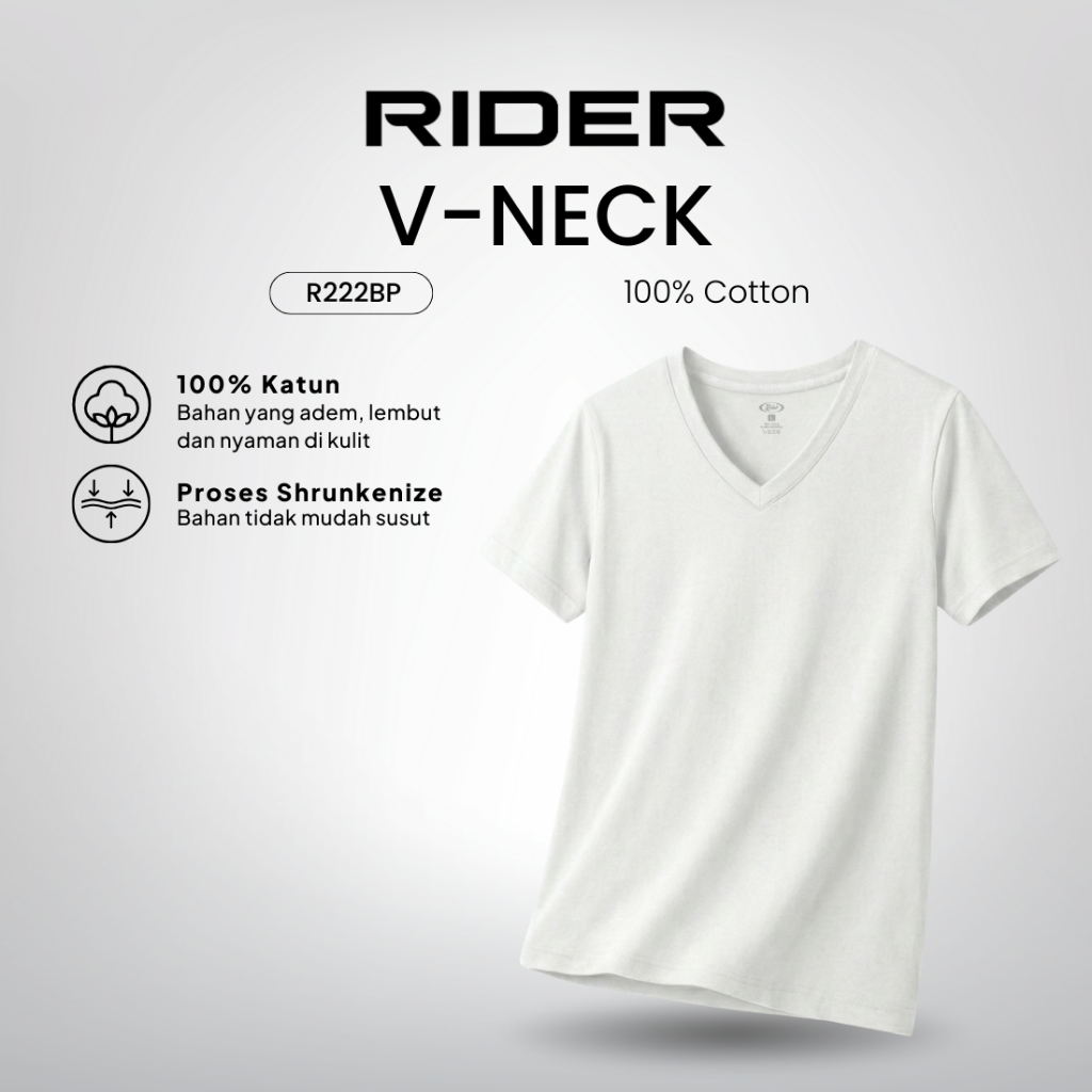 Rider T-Shirt - Kaos Dalam Pria V-Neck R222BP Warna Putih isi 1 Pcs