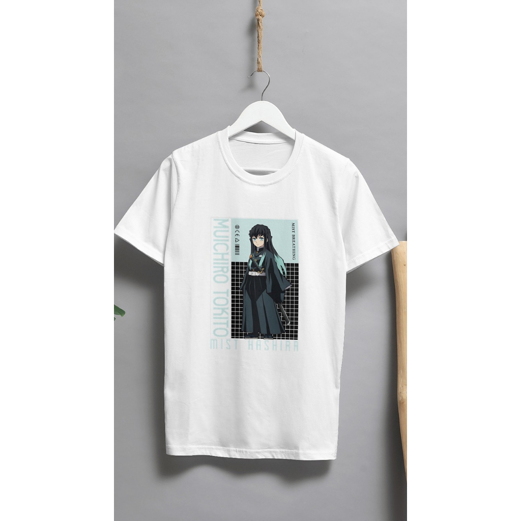 Kaos Demon Slayer Tshirt Anime Kimetsu no Yaiba Baju Kartun Muichiro Tokito Katun Pria Lengan Pendek