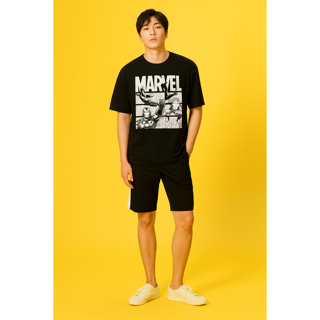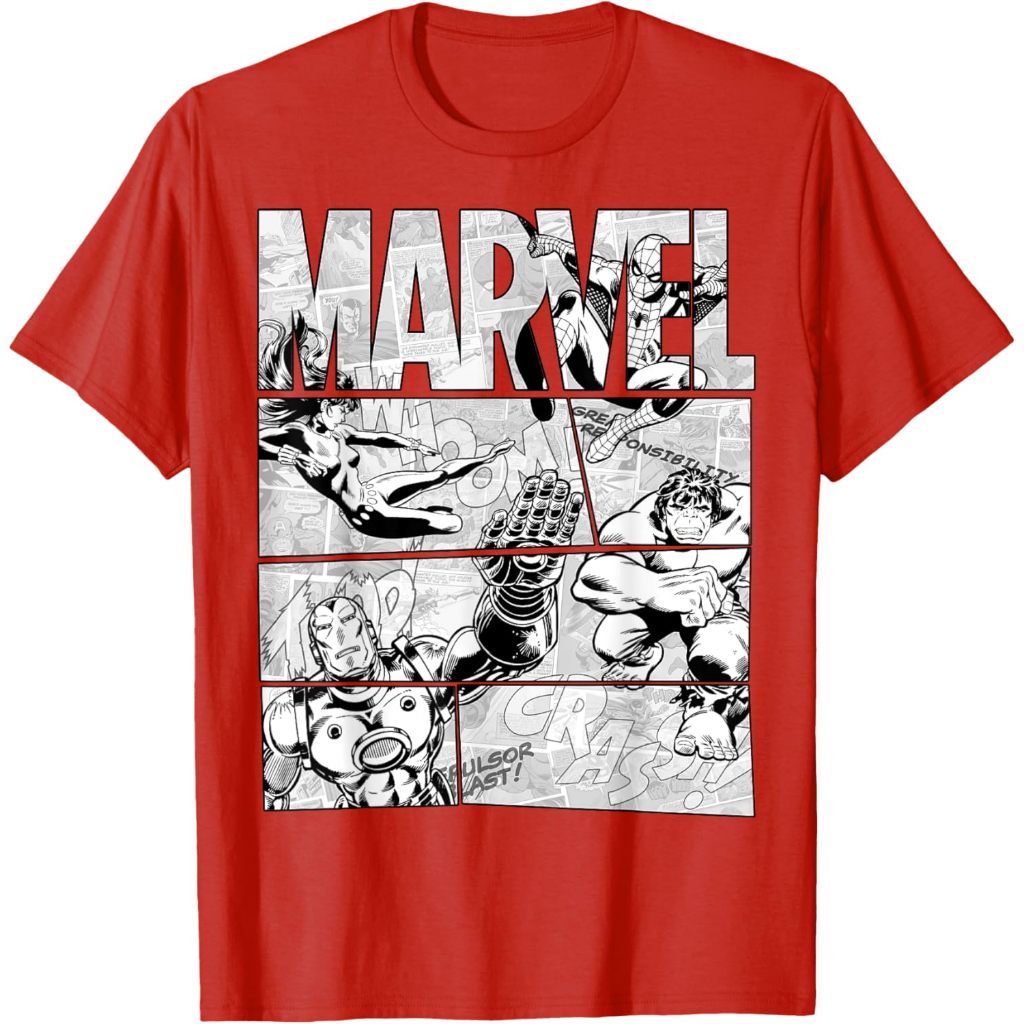 Kaos Marvel Avengers Retro Black and White Comic Graphic T-shirt – Baju Vintage 90s Retro Pria Wanita Unisex Cotton Combed 24s