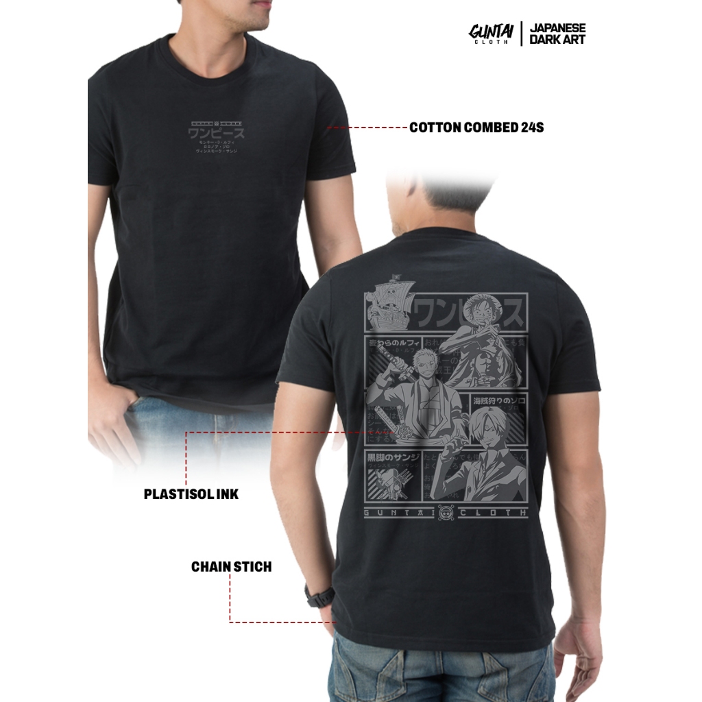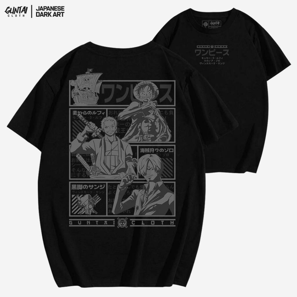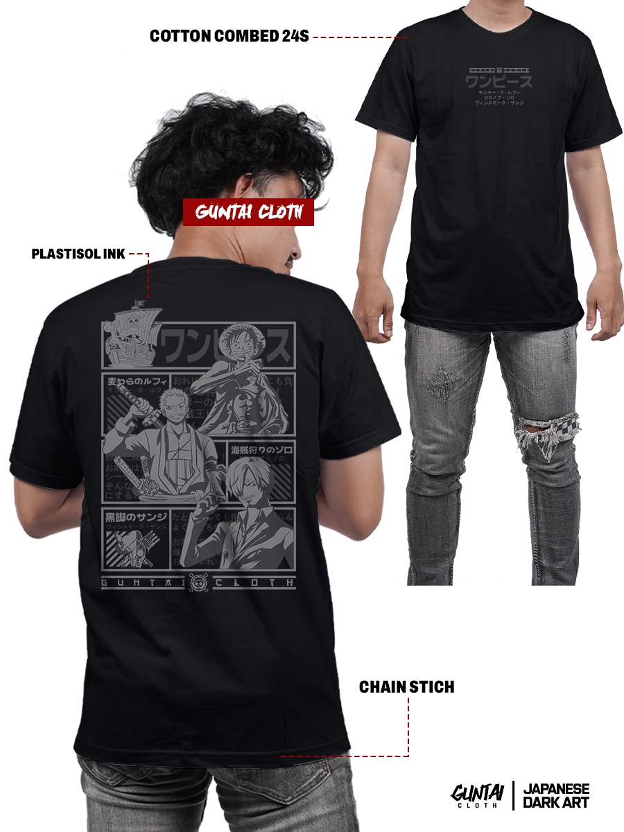 GUNTAI CLOTH Kaos Pria Distro Original 100% - Tshirt Cowok One Piece PIRATECREW | Cotton Combed 24s Sablon Plastisol Terbaik | Handmade Desain Manual