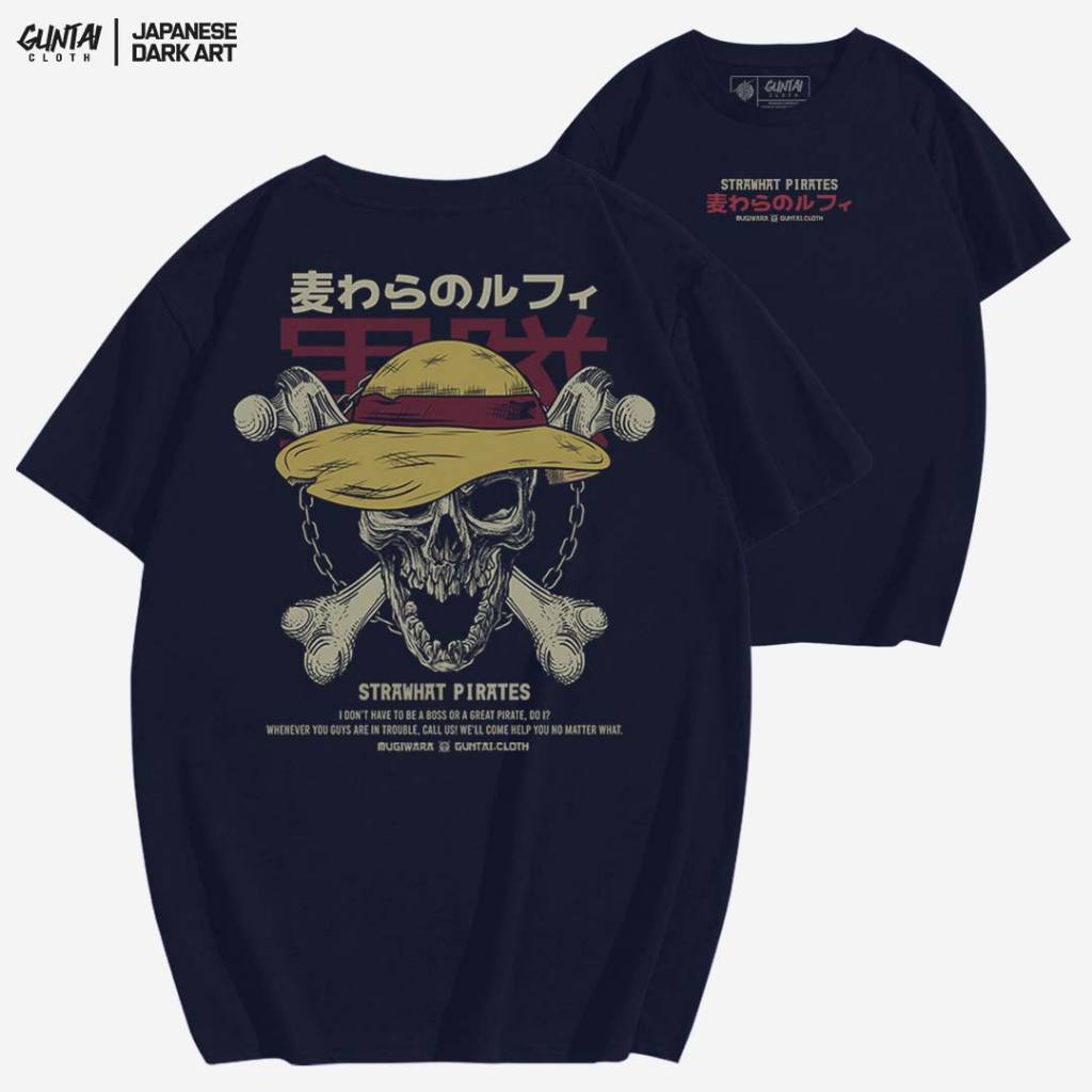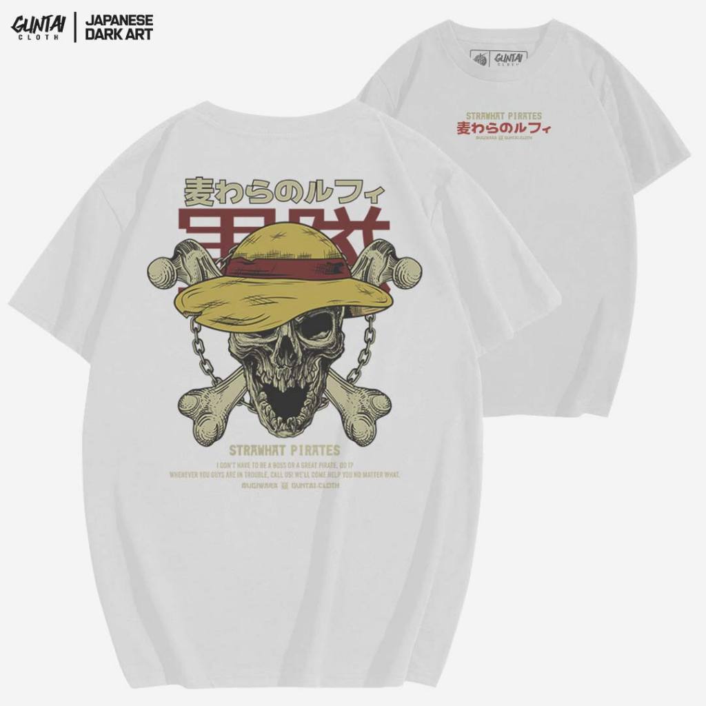 GUNTAI CLOTH Kaos Pria Distro Original 100% - Tshirt Cowok One Piece STRAWHAT | Cotton Combed 24s Sablon Plastisol Terbaik | Handmade Desain Manual
