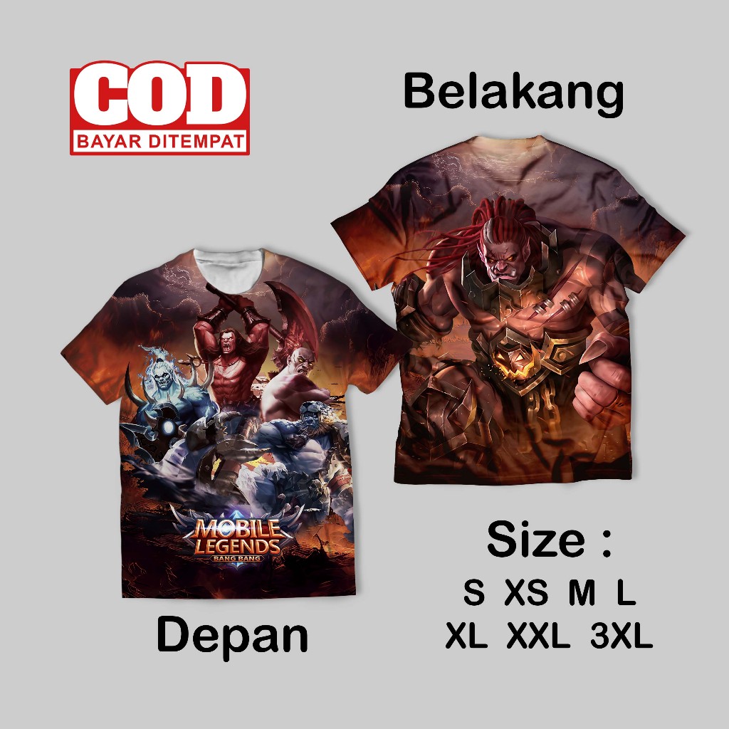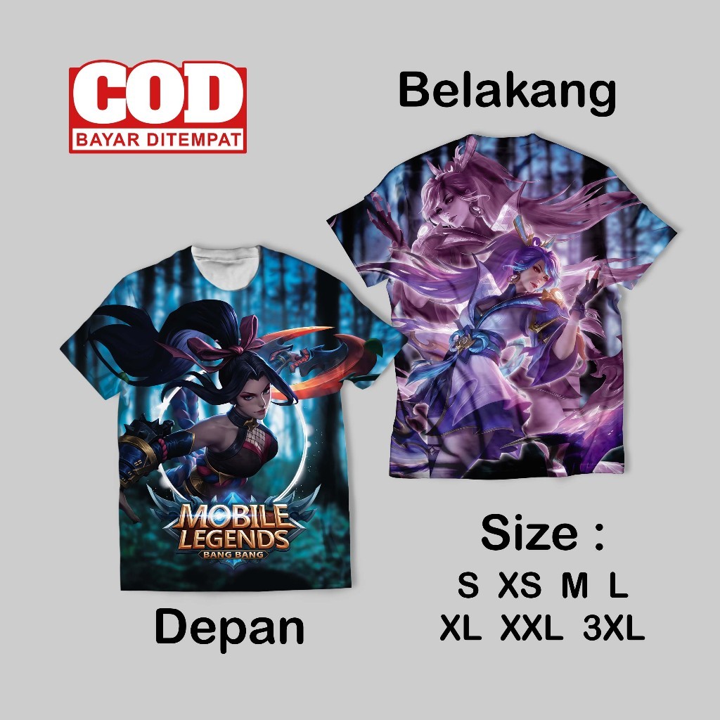 Kaos Fullprint Hero Legenda Seluler Bang Bang Keren | Kaos AOP MLBB New Depan Belakang