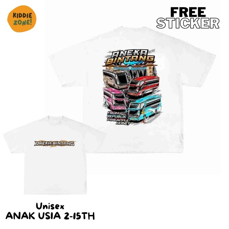 Kaos JetBus Aneka Bintang Baju Bus Mania Anak Laki Laki 2-15th Free Sticker Distro Combed 30s