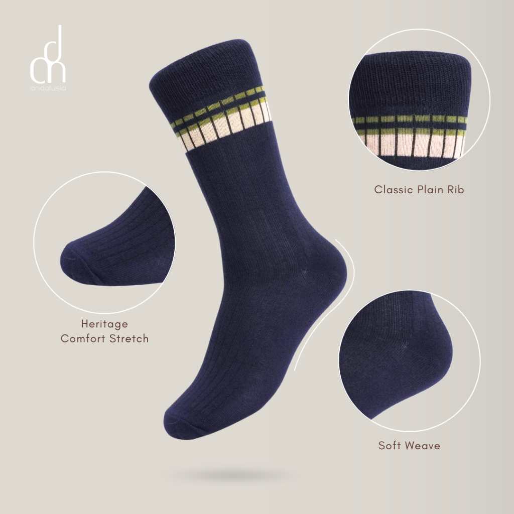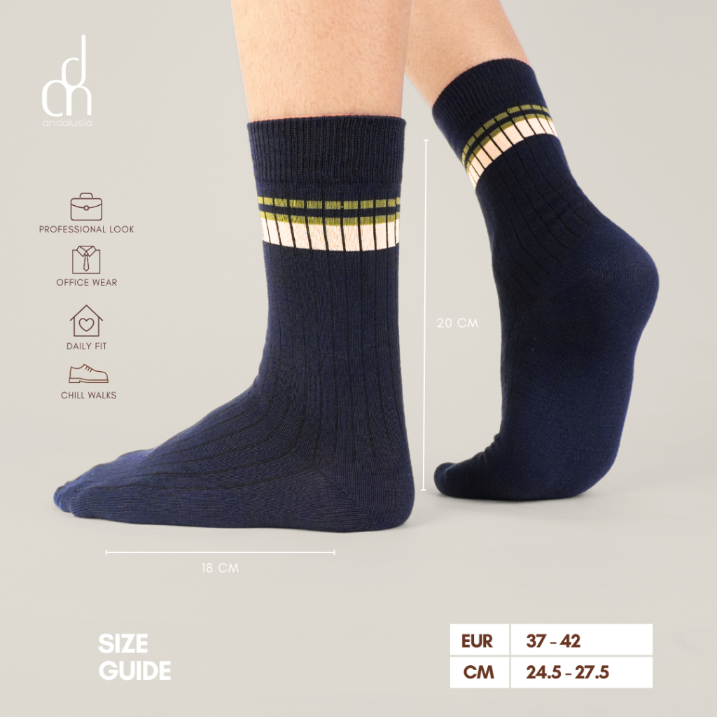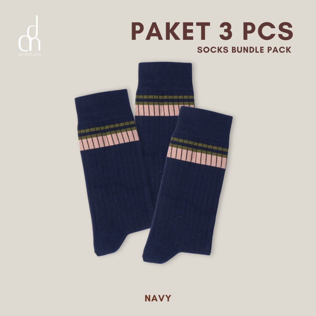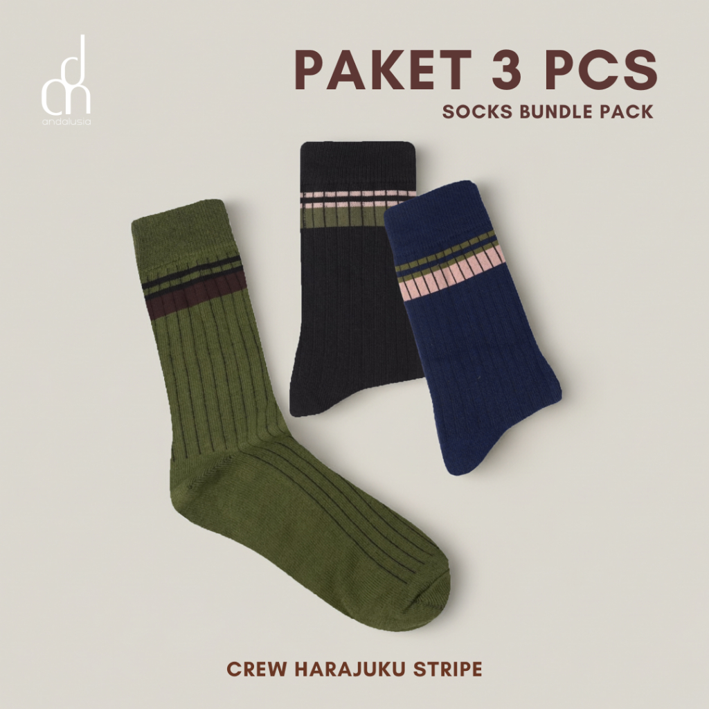 ANDALUSIA - Kaos Kaki Unisex Crew Paket 3 PCS Harajuku Retro Striped