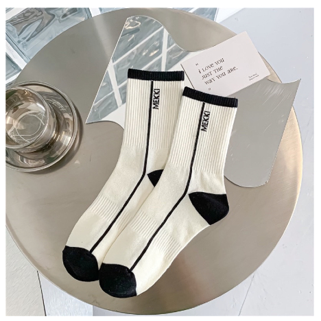 Kaos Kaki Panjang Motif Garis Hitam Putih Kaus Kaki Olahraga Atas Mata Kaki Unisex Kekinian