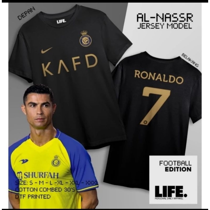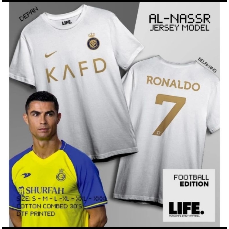 Kaos Tshirt Al Nasser Ronaldo / Kaos Baju Bola Suporter Casual Katun Supporter Al Nasser / Baju Kaos Distro Bahan Katun Supporter AL Nasser / Cotton Tshirt Distro Cristiano Ronaldo / Life Football edition