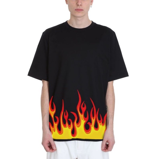 Kaos Motif Api Black On Fire - Baju Hitam Pria Rapper Oversize Motif Api Big Size XXL XXXL