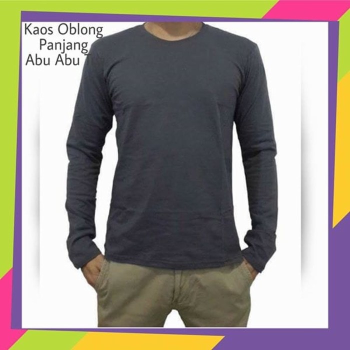 Kaos Oblong Polos Lengan Panjang Warna Abu-Abu - KAOS POLOS LENGAN PANJANG - KAOS POLOS PRIA - KAOS POLOS COWOK LENGAN PANJANG