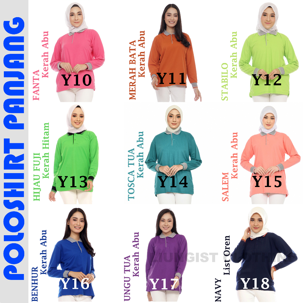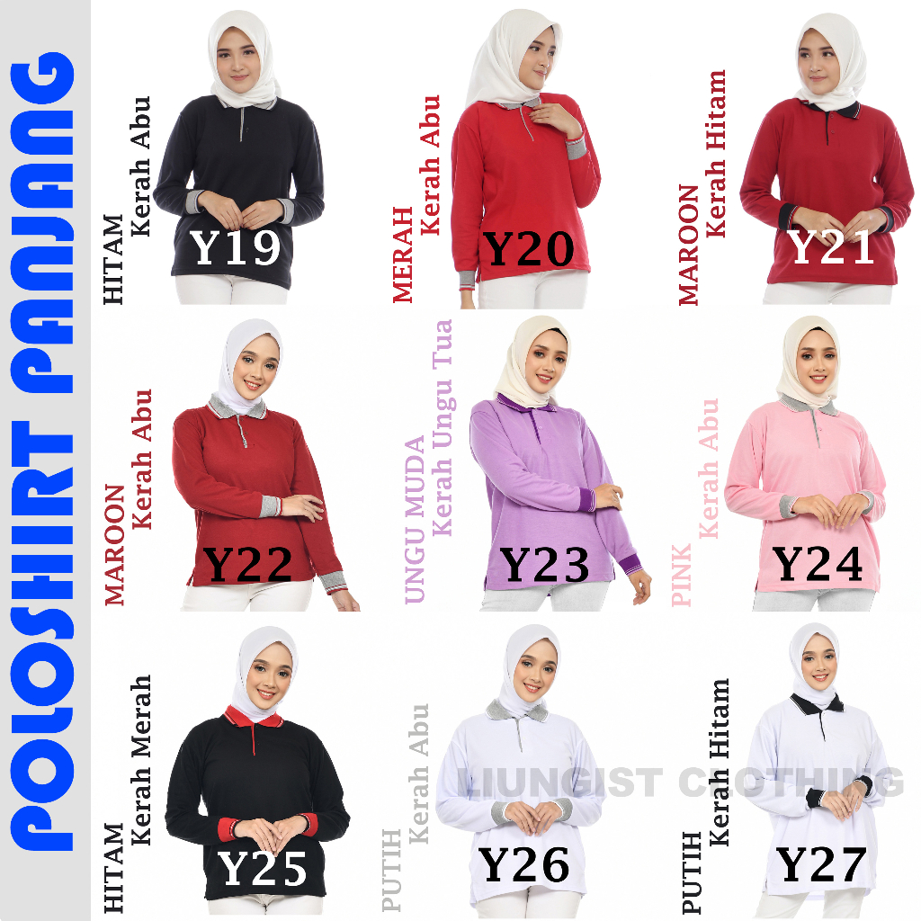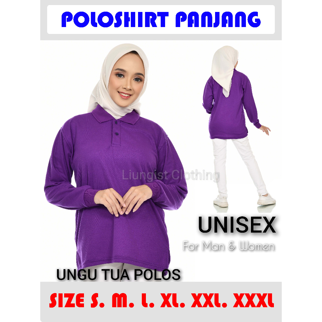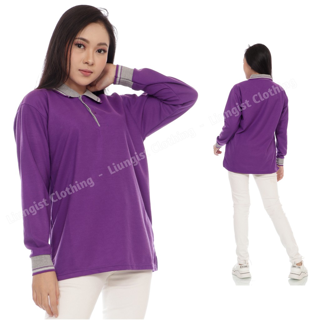 Kaos Polo Panjang Unisex Ungu Tua Kerah Abu / Kaos Kerah / Poloshirt / Polo Shirt Panjang
